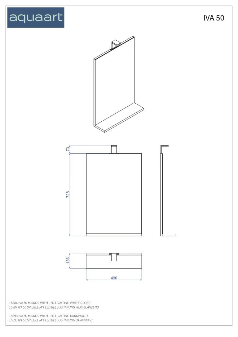 IVA 50 OGLEDALO S LED RASVJETOM BIJELI SJAJ