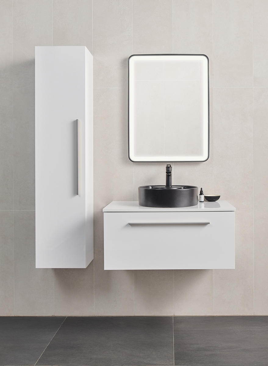 SMART 150 SIDE CABINET WHITE GLOSS SILVER HANDLE