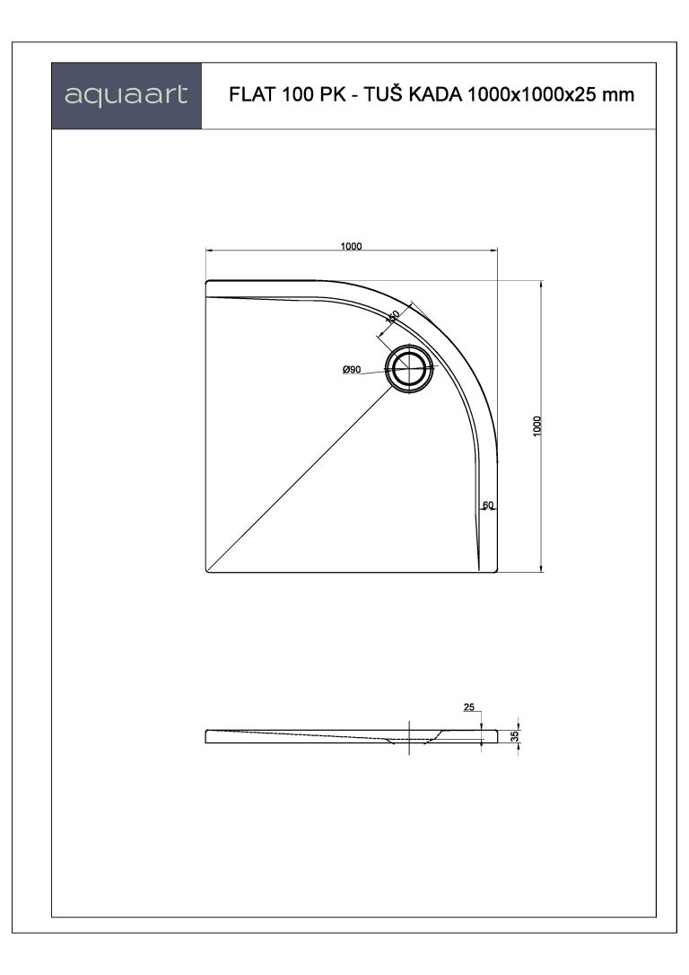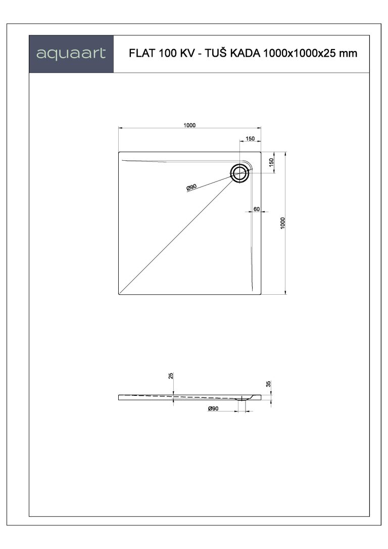 FLAT 100 KV TUŠ KADA 1000×1000 mm