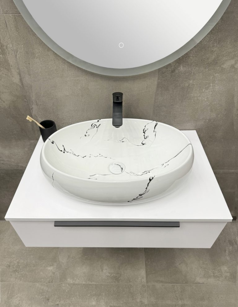 Keramički umivaonik Bonnie s bijelo-crnim efektom unosi moderan kontrast u vašu kupaonicu, stvarajući upečatljiv vizualni dojam. Elegantna kombinacija boja savršeno se uklapa u suvremene interijere, dok kvalitetna izrada i jednostavno održavanje čine Bonnie idealnim spojem funkcionalnosti i stila. Posebnost ovog umivaonika je poklopac za piletu u boji umivaonika, koji pruža savršenu harmoniju dizajna i detalja.
