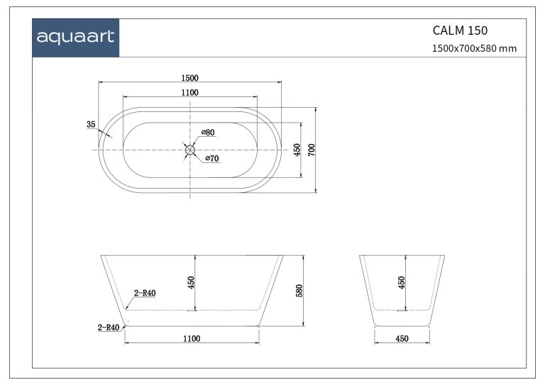 CALM 150 SAMOSTOJEĆA KUPAONSKA KADA 1500X700X580 MM