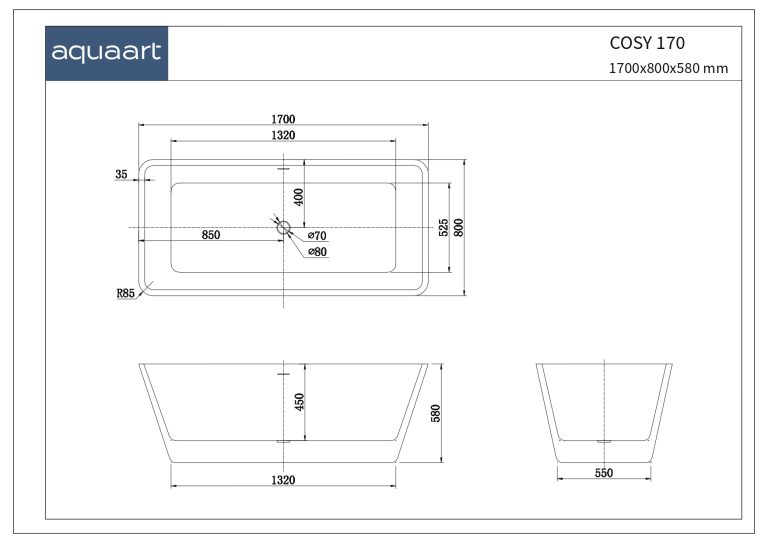 COSY 170 SAMOSTOJEĆA KUPAONSKA KADA 1700X800X580 MM