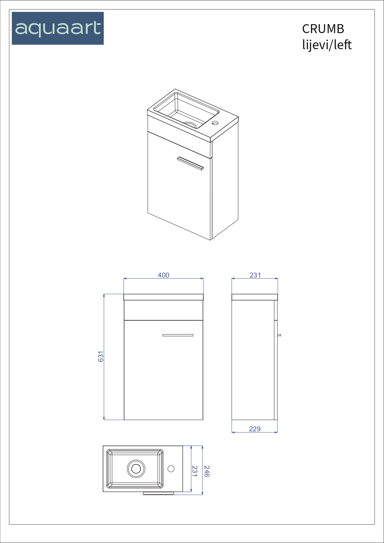 Kupaonski ormarić Crumb s integriranim umivaonikom unosi dozu suvremenog minimalizma u prostor, štedi prostor i osigurava urednost, uklapajući se lako u manje kupaonice i moderne interijere, a dolazi s praktičnim lijevim otvaranjem vrata.