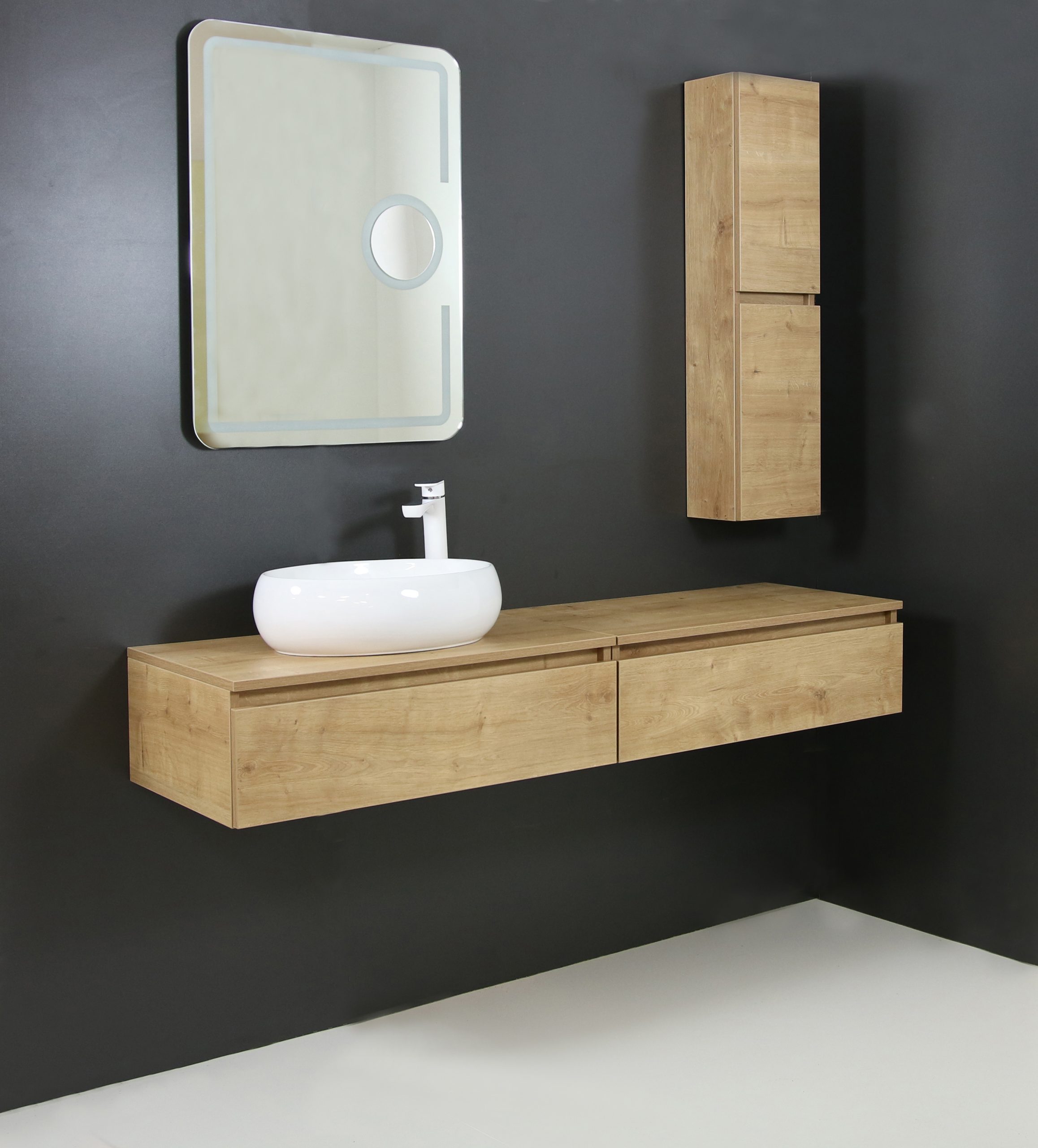 Gornji ormarić kupaonskog kompleta ELEGANT donosi moderan i skladan izgled u prostor, s jednom praktičnom ladicom i pripremljenom rupom za umivaonik, a zahvaljujući modularnom dizajnu lako se kombinira s donjim ormarićem koji se prodaje odvojeno, kako bi se vaša kupaonica prilagodila svakodnevnim potrebama.