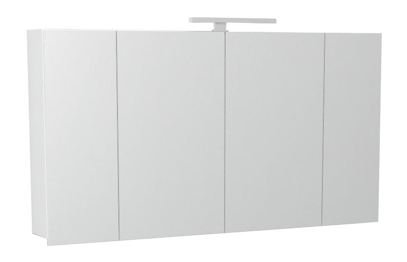 Gornji kupaonski ormarić s ogledalom na fronti, ugrađenom LED rasvjetom, prekidačem, utičnicom i soft close sistemom zatvaranja nudi obilje polica za organizirano i pregledno odlaganje, unoseći svjetlost i praktičnost u svaki kupaonski prostor.