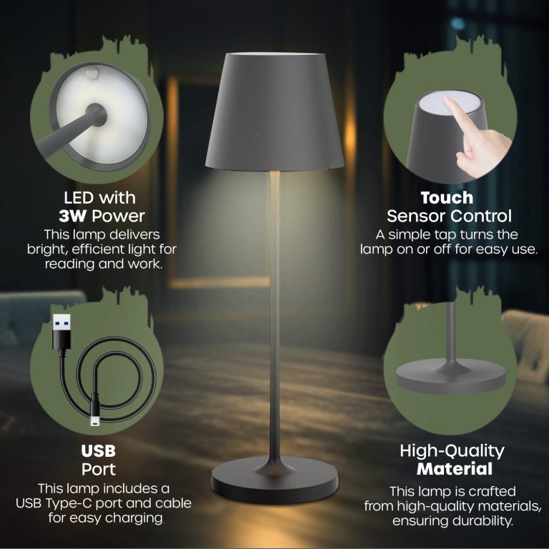LED stolna svjetiljka Gema spoj je mobilnosti, funkcionalnosti i dizajna. Zahvaljujući ugrađenoj punjivoj bateriji (2x3,7V 4000 mAh), pruža 8 do 12 sati bežičnog osvjetljenja, a puni se jednostavno putem priloženog USB kabela (6–10 sati). S mogućnošću podešavanja temperature svjetla između 2700K, 3500K i 4000K, te snagom od 3W i 300 lm, Gema se prilagođava svakom ambijentu – od terasa i vrtova do dnevnih boravaka i spavaćih soba. Otporna na vodu i udarce (IP54 / IK04), idealna je za korištenje u unutarnjim i vanjskim prostorima.