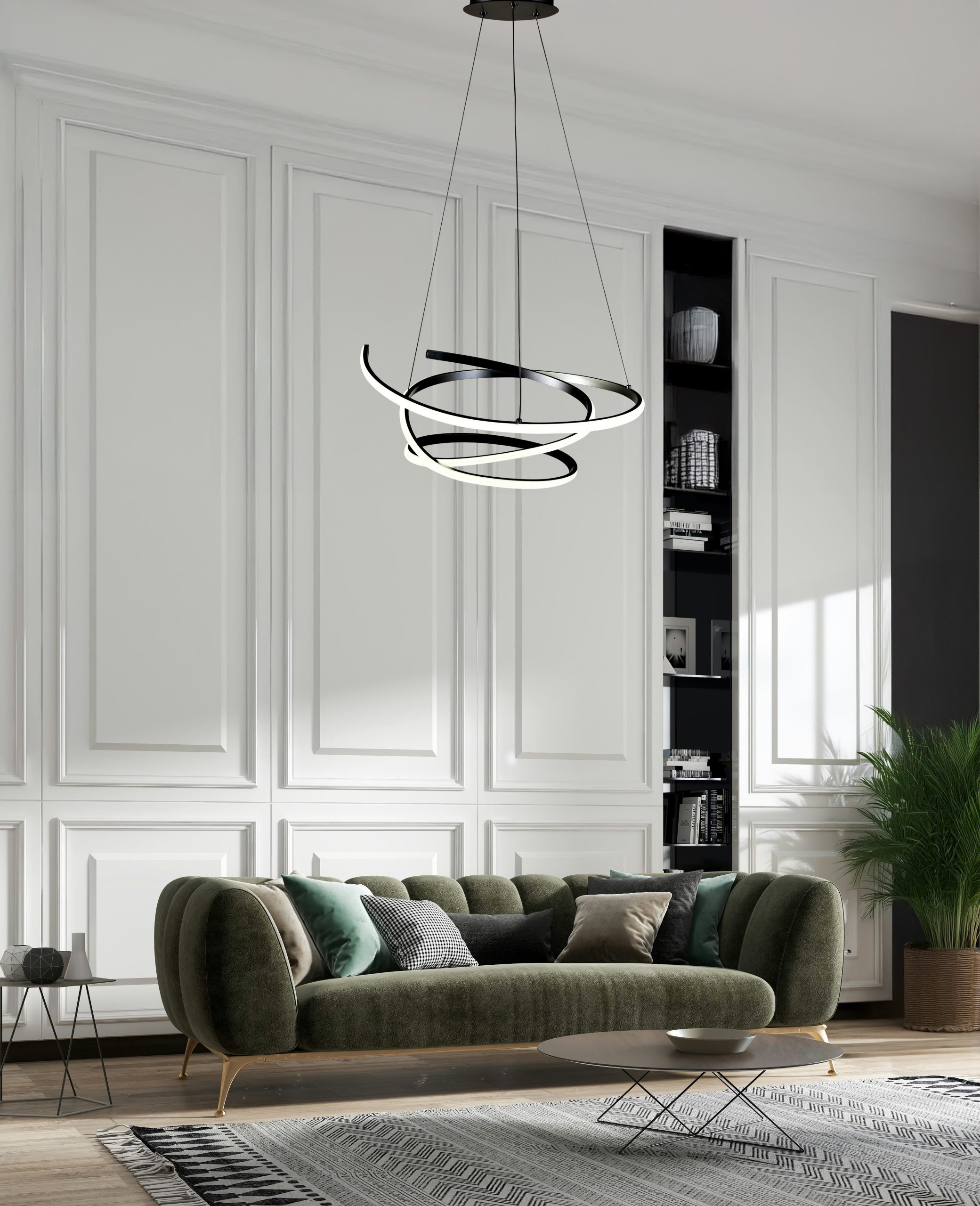 Cora LED viseća svjetiljka u crnoj boji ističe se svojim posebnim dizajnom koji prostoru daje dozu karaktera i osobnosti. Topla bijela svjetlost (3000K) i 1818 lumena nježno obasjavaju prostor, stvarajući prirodan ugođaj u blagovaonicama, dnevnim boravcima ili radnim kutcima. Cora je savršen odabir kad želite da svjetlost i forma zajedno ispričaju priču prostora.