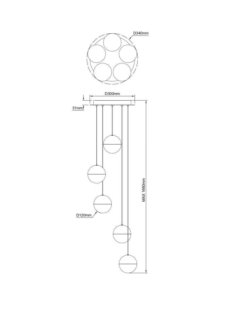 LED VISEĆA SVJETILJKA LUMINIS 5 D340 30W 1200lm 3000K IP20 BLACK CHROME