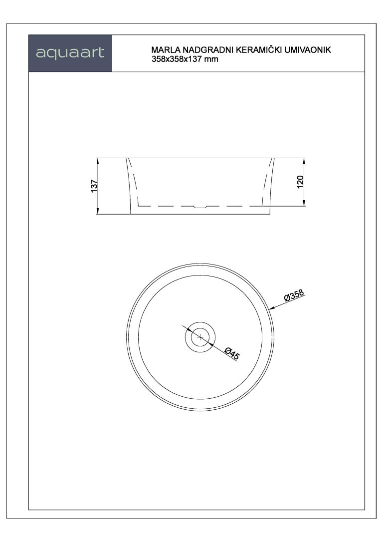 MARLA NADGRADNI KERAMIČKI UMIVAONIK 358x358x137 mm