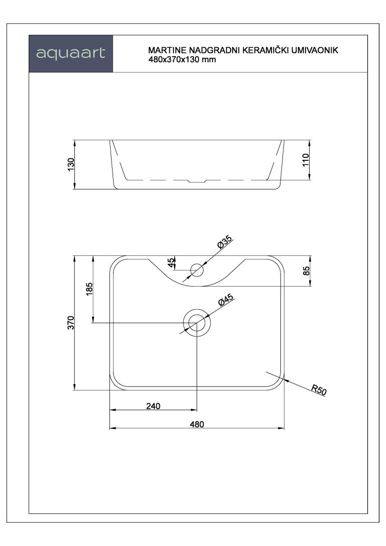 MARTINE NADGRADNI KERAMIČKI UMIVAONIK 480x370x130 mm