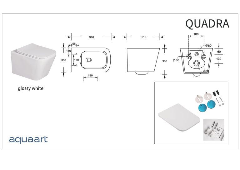 QUADRA VISEĆA ŠKOLJKA S DASKOM RIMLESS 510x350x360 mm