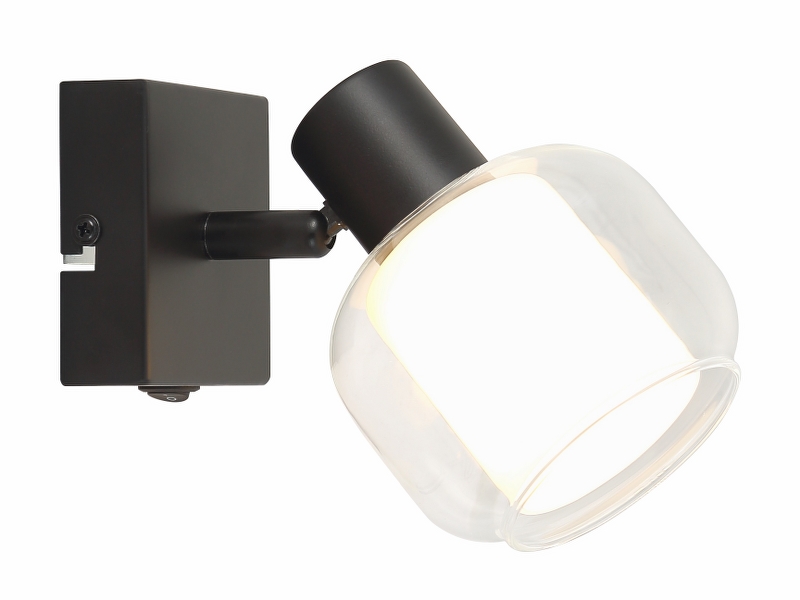 Spot svjetiljka CHARLOTTE spoj je modernog minimalizma i elegantne funkcionalnosti. Njezino dvostruko stakleno sjenilo sastoji se od vanjskog prozirnog stakla i unutarnjeg bijelog sjenila, koje osigurava meko i ravnomjerno raspršeno svjetlo, stvarajući ugodnu atmosferu u prostoru. Crna metalna baza dodaje sofisticiran kontrast i stabilnost. Opremljena E14 grlom, podržava žarulje do 8W, pružajući učinkovito i estetski ugodno osvjetljenje. Zahvaljujući integriranom prekidaču, jednostavna je za korištenje, što je čini savršenim rješenjem za spavaće sobe, hodnike, radne prostore i čitalačke kutke.