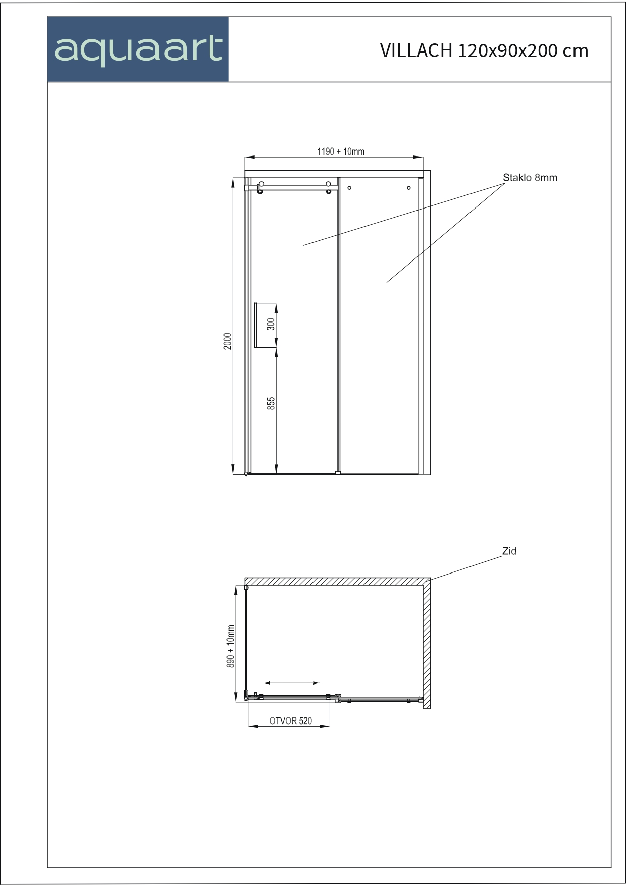 VILLACH 80120 PRAVOKUTNA TUŠ KABINA 120x80x200 cm
