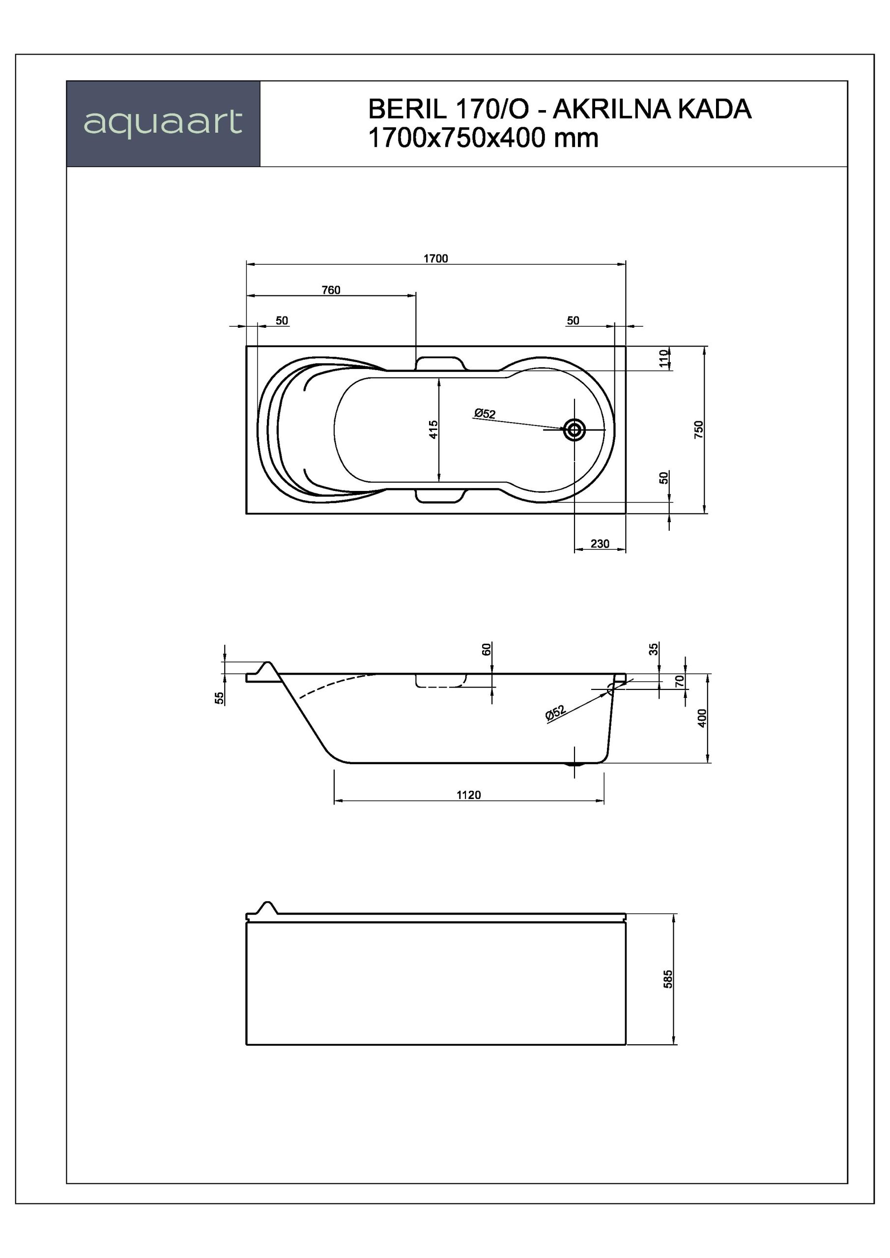 BERIL 170/O KUPAONSKA KADA 1700×750 mm