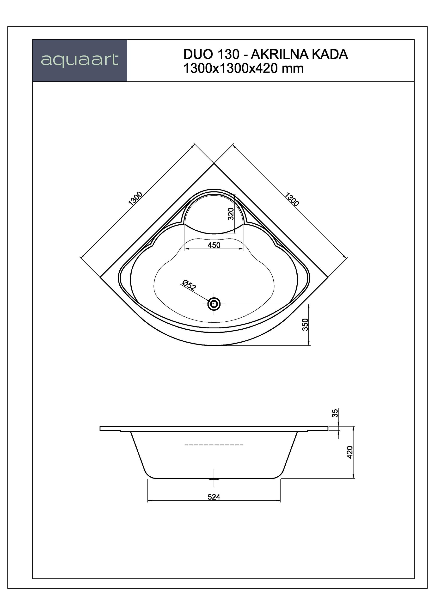 DUO 130 KUPAONSKA KADA 1300×1300 mm