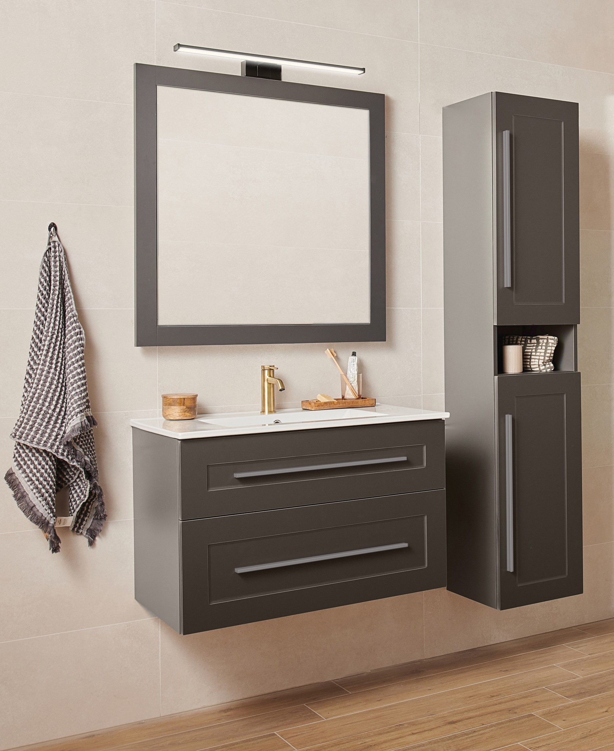 Donji ormarić kupaonskog kompleta ETERNITY u dekoru grafit supermat sa srebrnim ručkicama i ugradbenim keramičkim umivaonikom donosi snažan dojam suvremenog stila s notom elegancije, nudi praktičan prostor za odlaganje i pomaže održati kupaonicu urednom i preglednom. Isporučuje se bez sifona kako bi se prilagodio vašim potrebama.