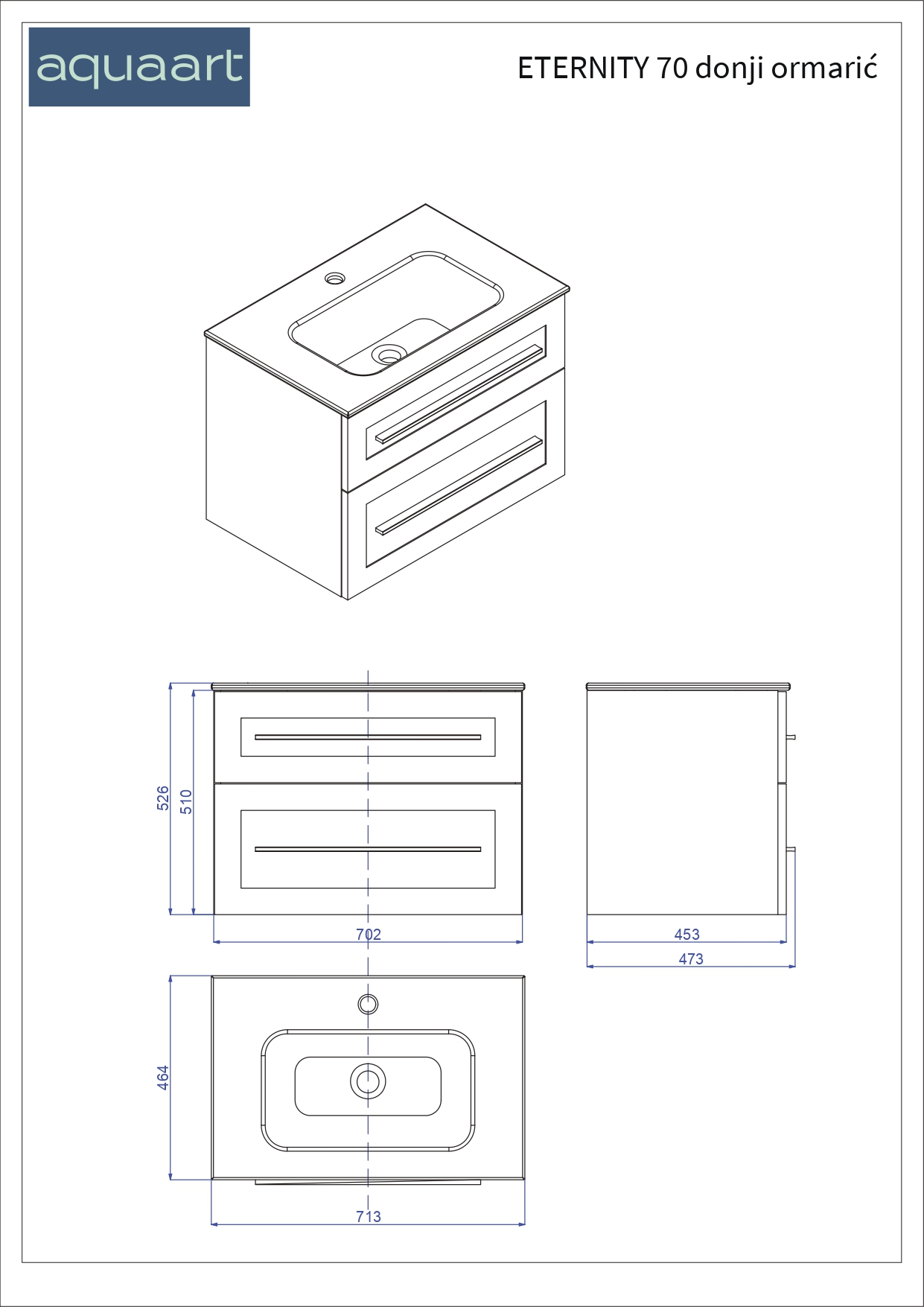 ETERNITY 70 DONJI KUPAONSKI ORMARIĆ KAŠMIR SREBRNA RUČKICA (CRNI UMIVAONIK)