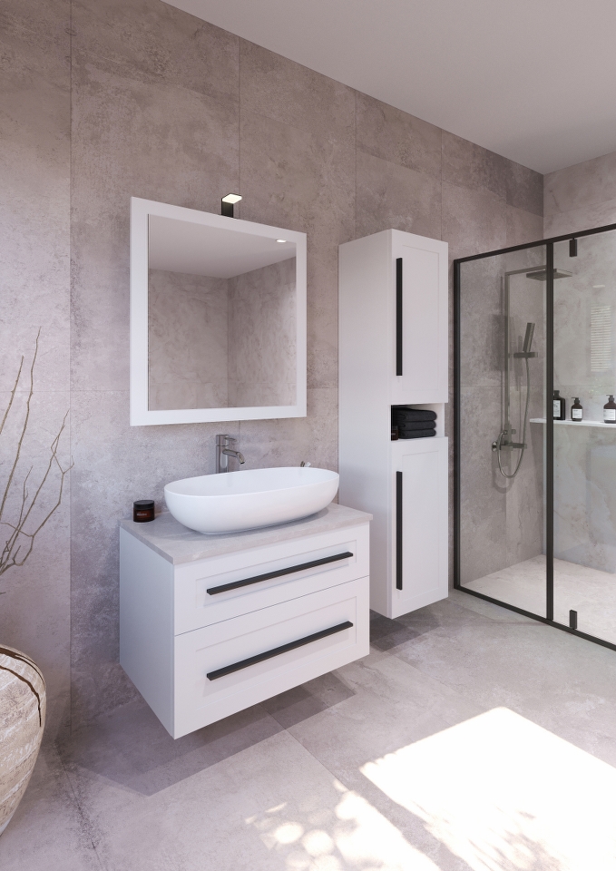 ETERNITY 80 DONJI KUPAONSKI ORMARIĆ BIJELI MAT CRNA RUČKICA S PLOČOM CANDELA MRAMOR