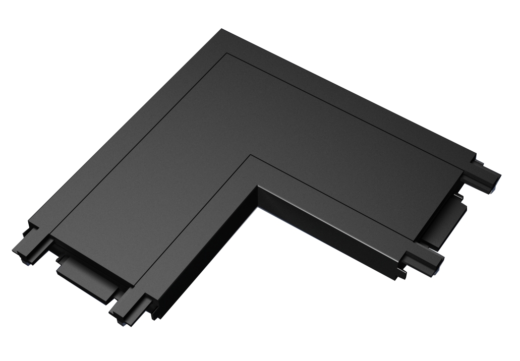 Konektor za spajanje tračnih magnetnih vodilica "L" u crnoj boji idealan je za kreiranje kutnih spojeva na 90 stupnjeva. Ovaj konektor omogućava jednostavno i sigurno povezivanje vaših vodilica u L-obliku, što je savršeno za postizanje kontinuirane rasvjete u kutovima i na složenim mjestima.