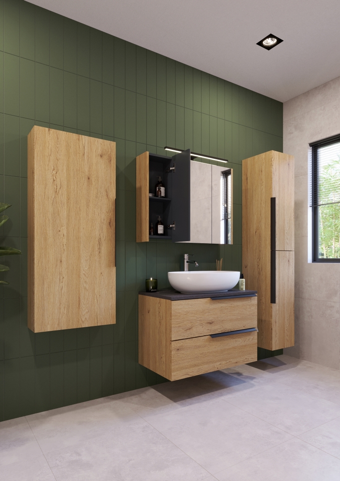 LATERAL 70 donji kupaonski ormarić u hrast natural dekoru s pločom Scivaro škriljevac i integriranim držačem za ručnik donosi prirodnu ljepotu i funkcionalnost u vašu kupaonicu. Hrastova tekstura pruža autentičan, prirodni izgled, dok ploča Scivaro škriljevac nudi čvrstu i dugotrajnu površinu koja se lako održava. Držač za ručnik omogućuje praktično i uredno odlaganje ručnika, a prostrani dizajn ormarića omogućuje organizirano pohranjivanje svih vaših kupaonskih potrepština. Ovaj ormarić čini vašu kupaonicu modernom, organiziranom i funkcionalnom.