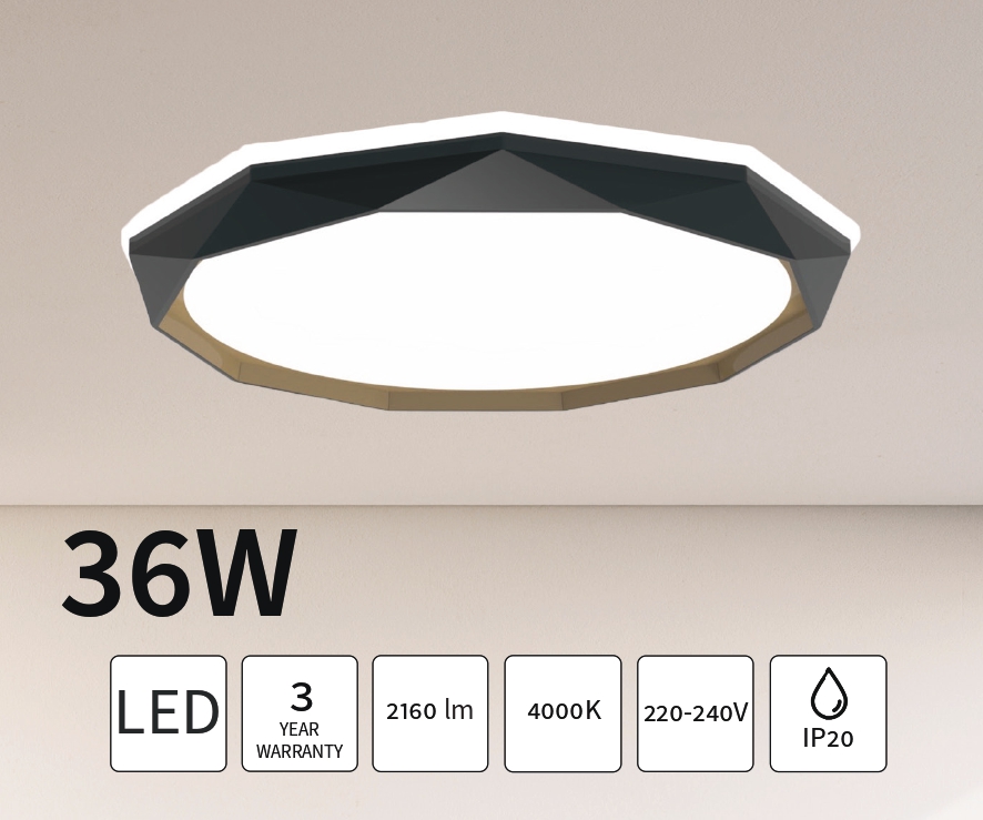 LED stropna svjetiljka VALENTINA kombinira moderni dizajn i vrhunsku funkcionalnost. S promjerom od 500 mm i snagom od 36W, pruža impresivnih 4000 lumena osvjetljenja pri ugodnoj temperaturi boje od 4000K, idealnoj za radne i stambene prostore. Izrađena od visokokvalitetnog PVC-a, crne boje, nudi elegantan izgled i dugotrajnost. IP20 zaštita čini je savršenom za unutarnju upotrebu. osvježite svoj prostor s VALENTINA LED stropnom svjetiljkom koja nudi optimalnu kombinaciju stila i funkcionalnosti.