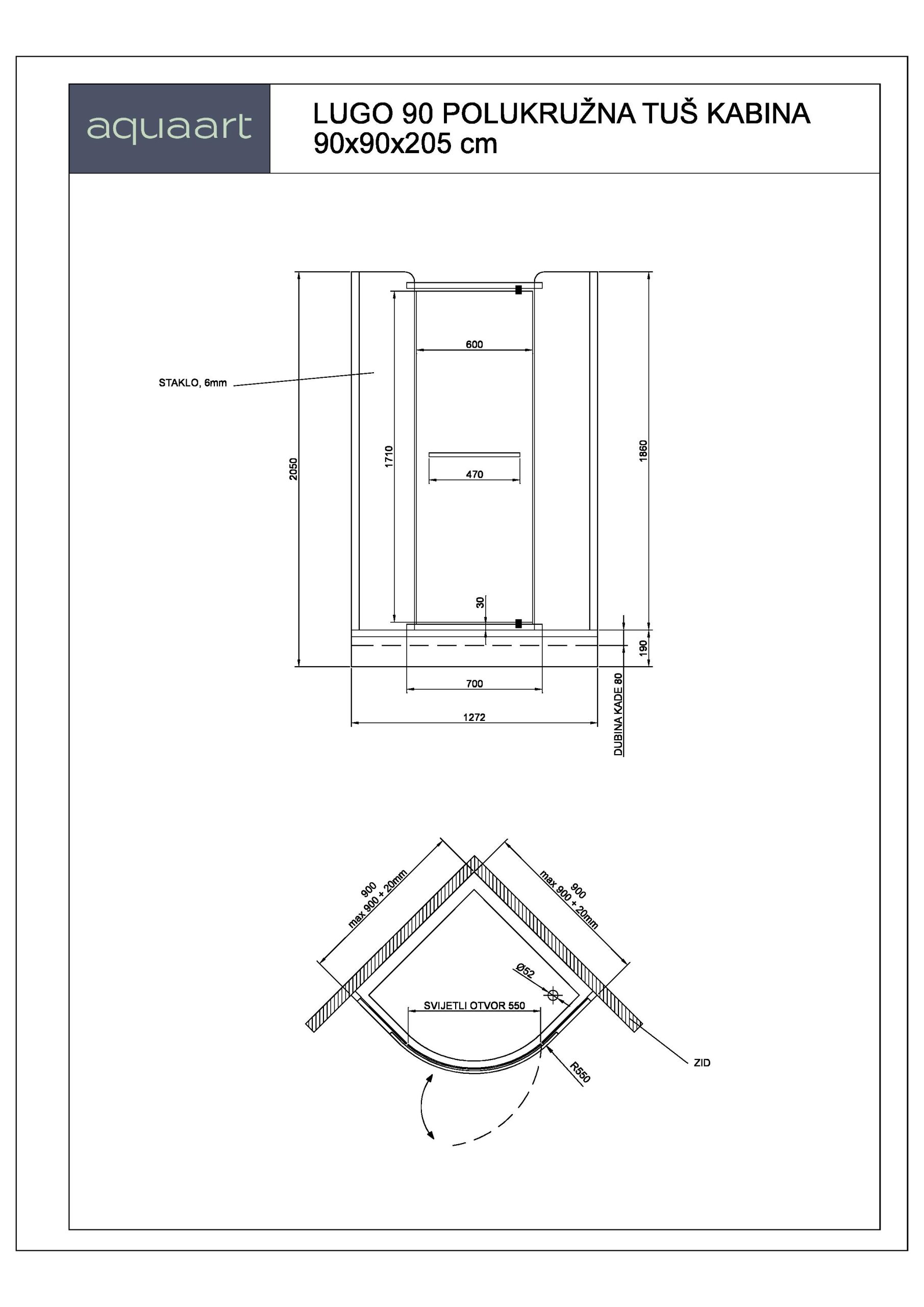 LUGO 90 POLUKRUŽNA TUŠ KABINA 90X90X205cm