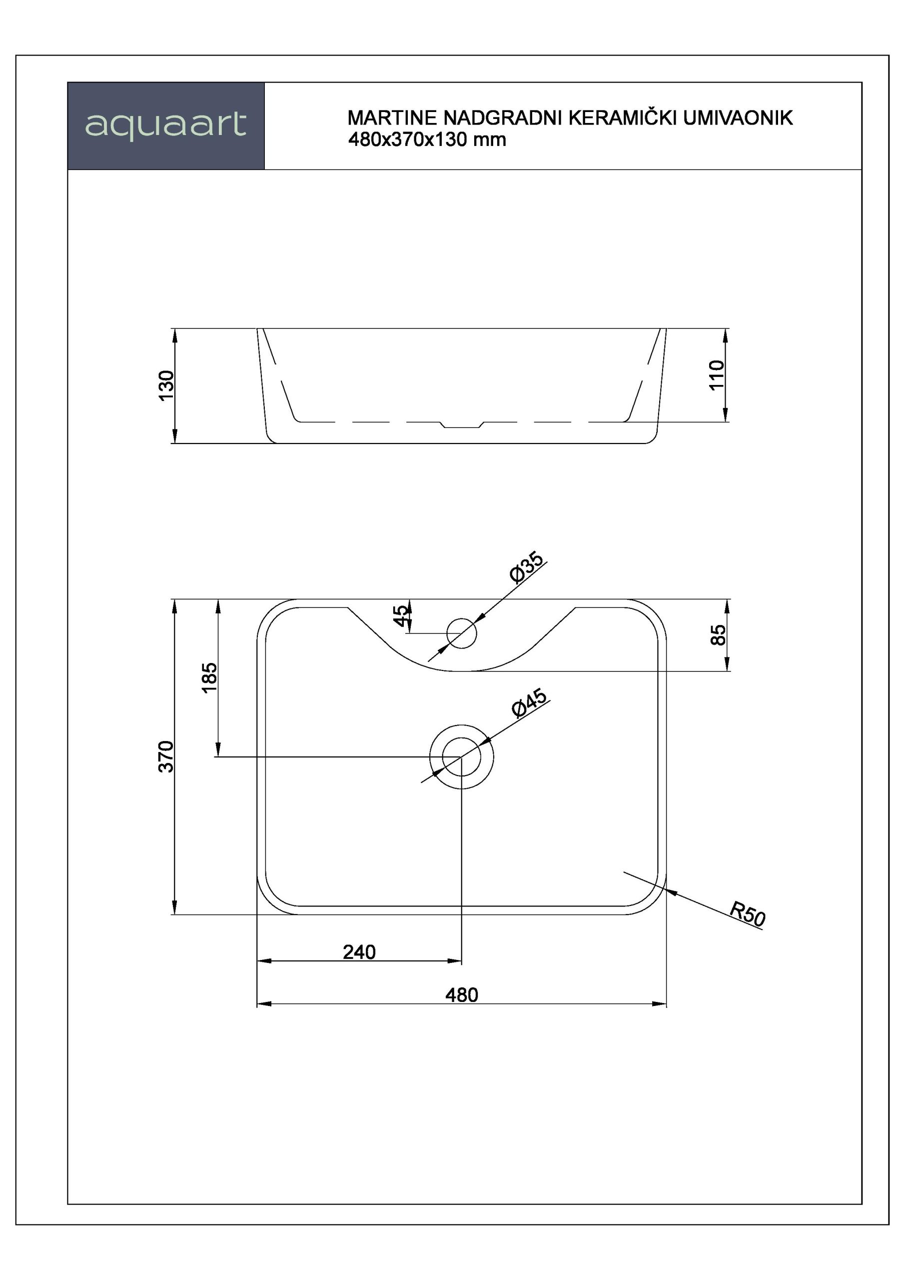 MARTINE NADGRADNI KERAMIČKI UMIVAONIK 480x370x130 mm