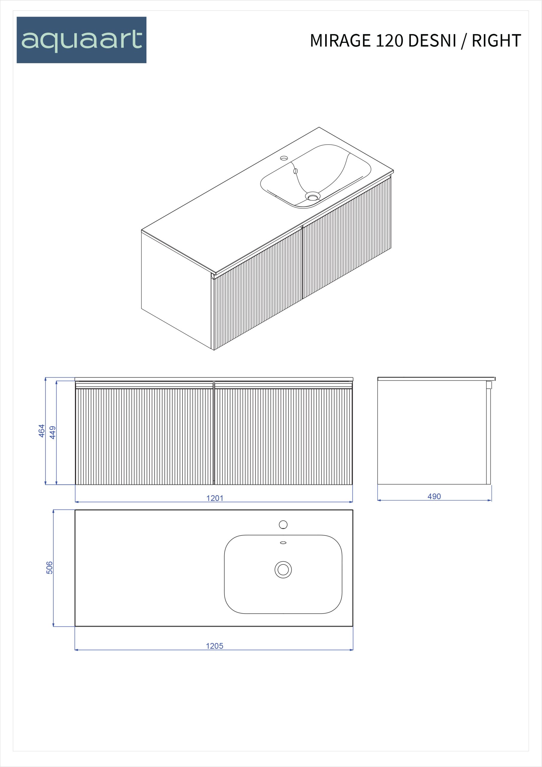 MIRAGE 120 DONJI KUPAONSKI ORMARIĆ DESNI KAŠMIR CRNA RUČKICA