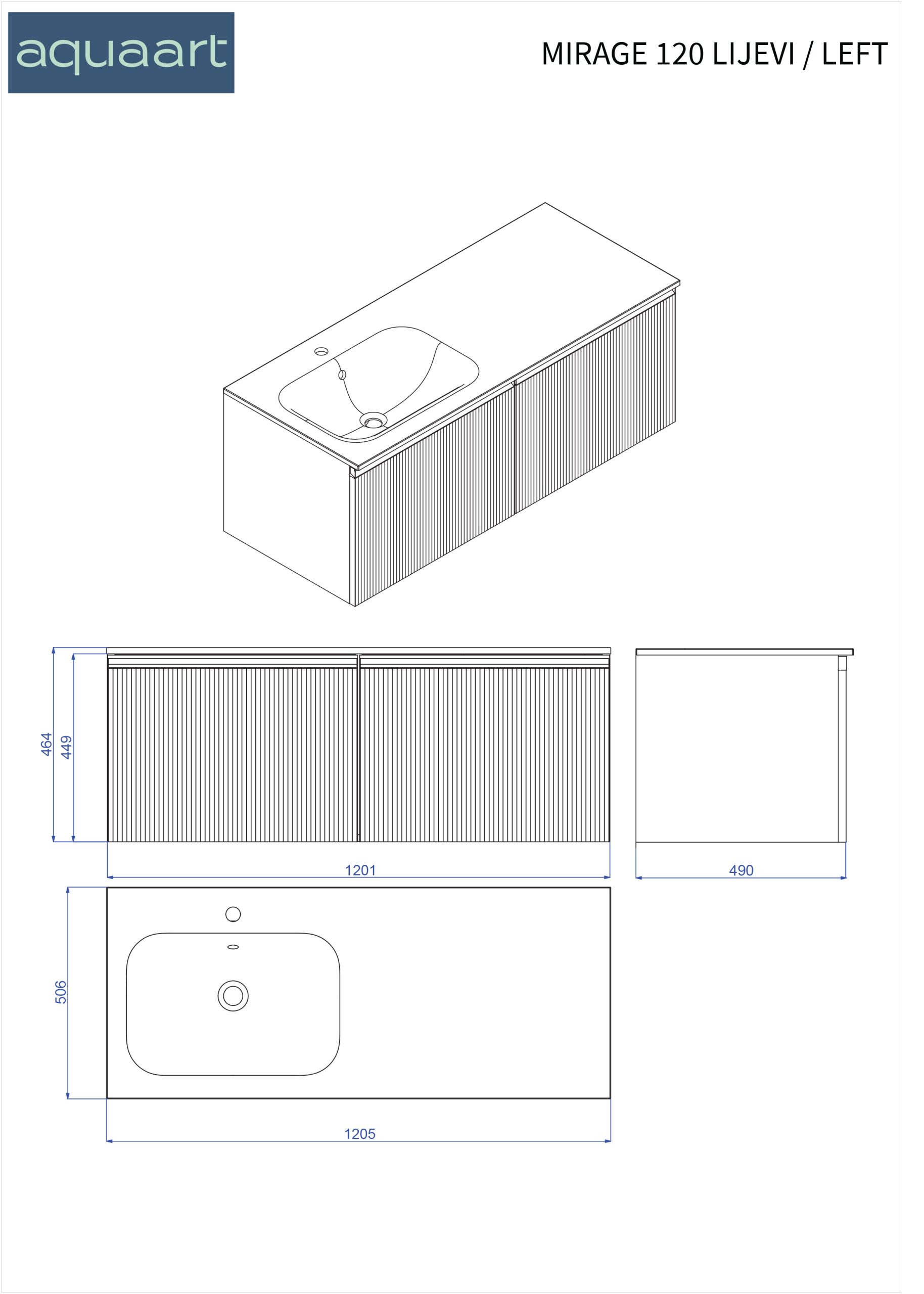 MIRAGE 120 DONJI KUPAONSKI ORMARIĆ LIJEVI KAŠMIR CRNA RUČKICA