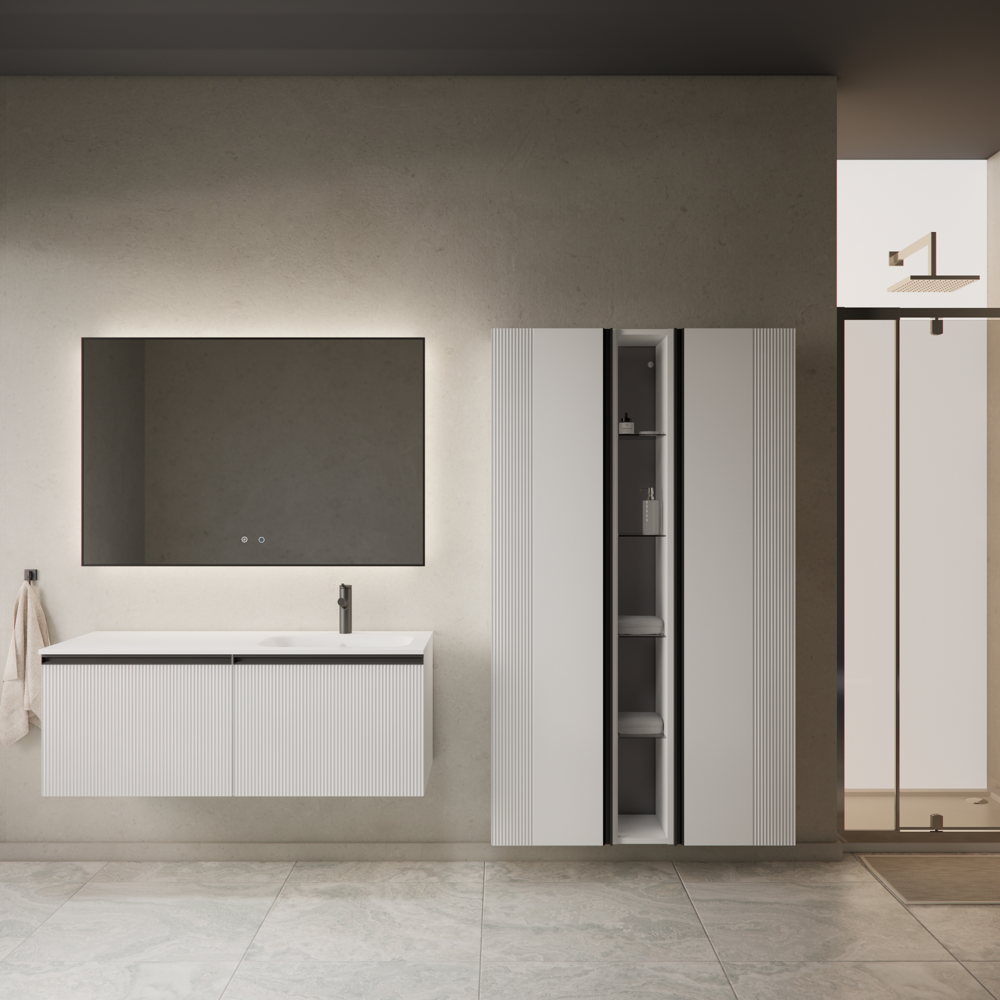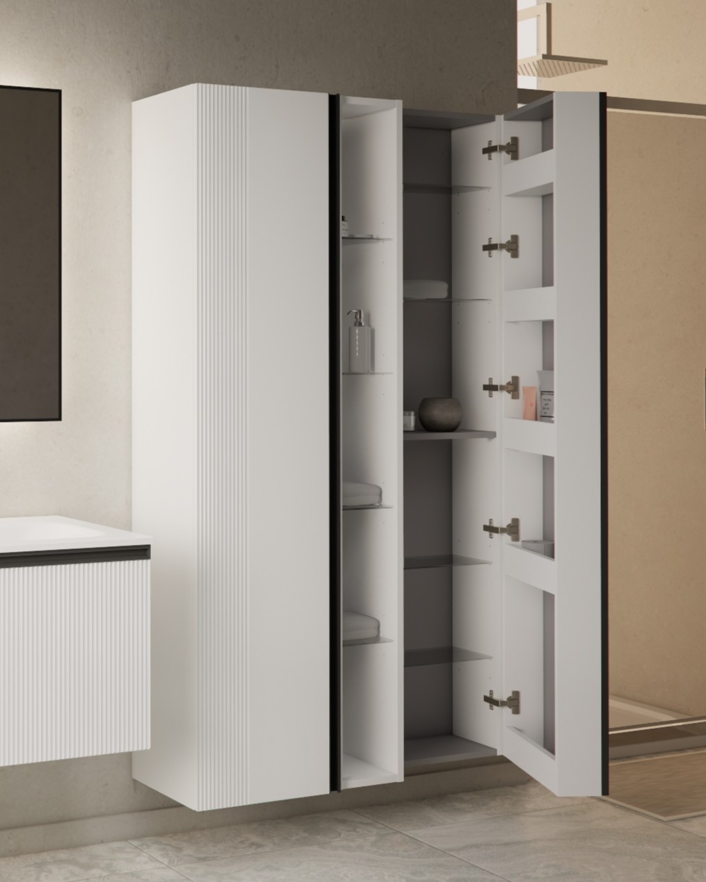 MIRAGE 170 BOČNI PREKLOPNI KUPAONSKI ORMARIĆ BIJELI MAT CRNA RUČKICA