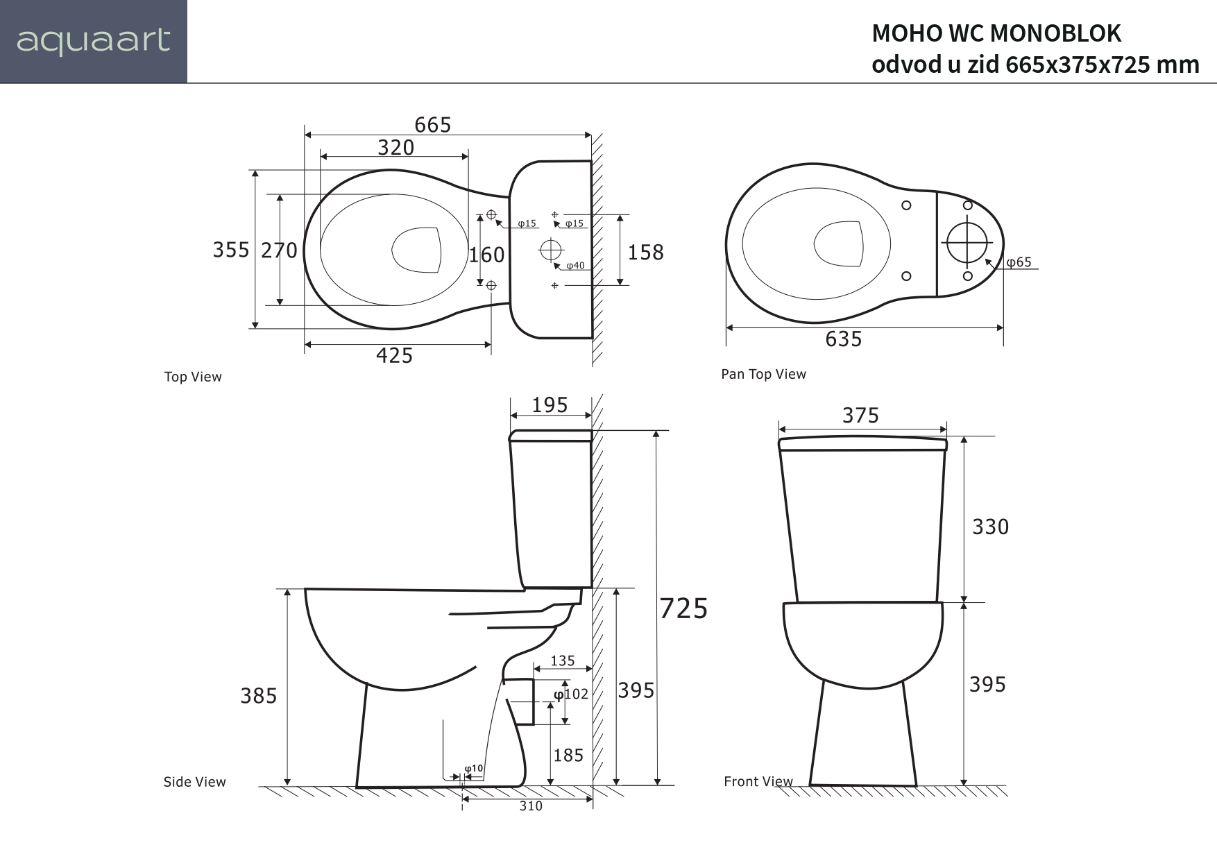 MOHO WC MONOBLOK ZIDNI ODVOD 665x375x725 mm