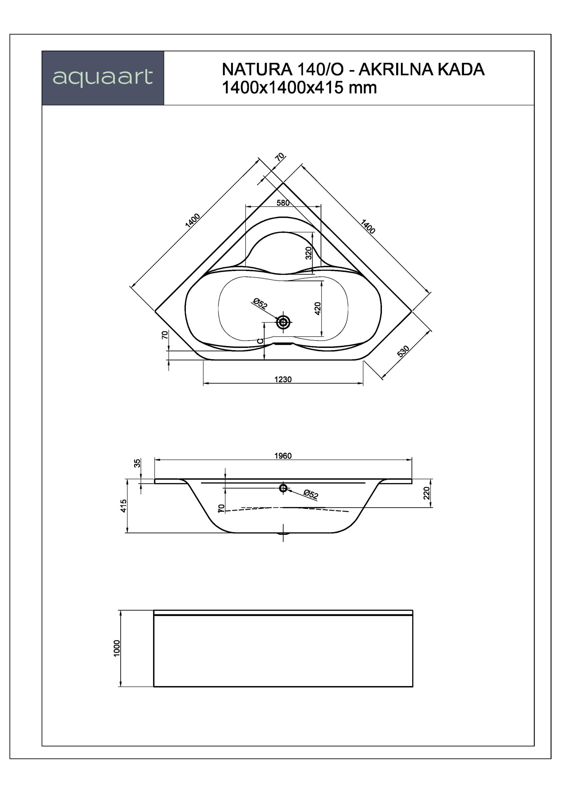 NATURA 140/O KUPAONSKA KADA 1400×1400 mm