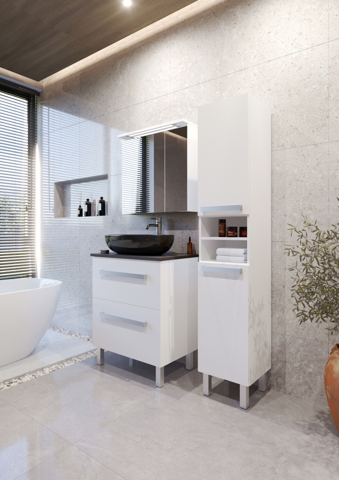 SARA 60 DONJI KUPAONSKI ORMARIĆ BIJELI SJAJ S PLOČOM SCIVARO ŠKRILJEVAC