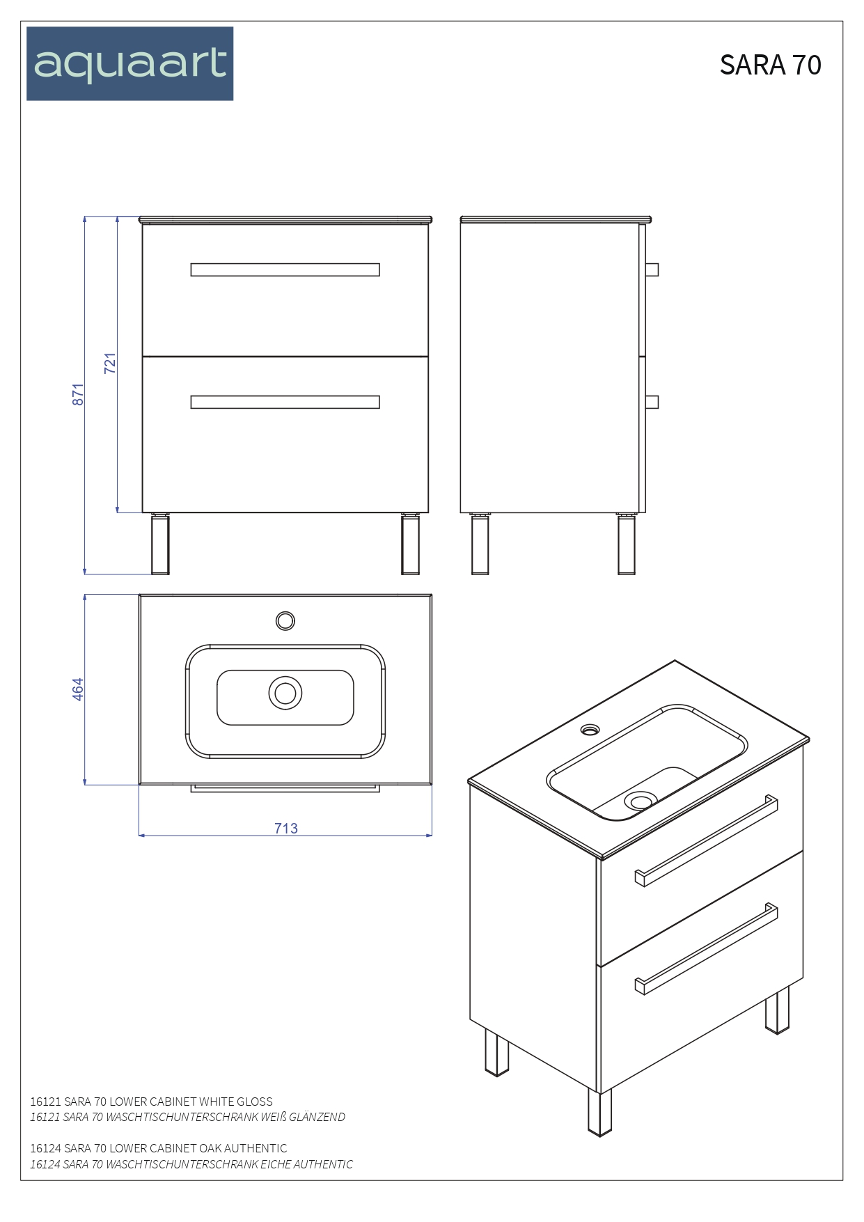 SARA 70 DONJI KUPAONSKI ORMARIĆ BIJELI SJAJ