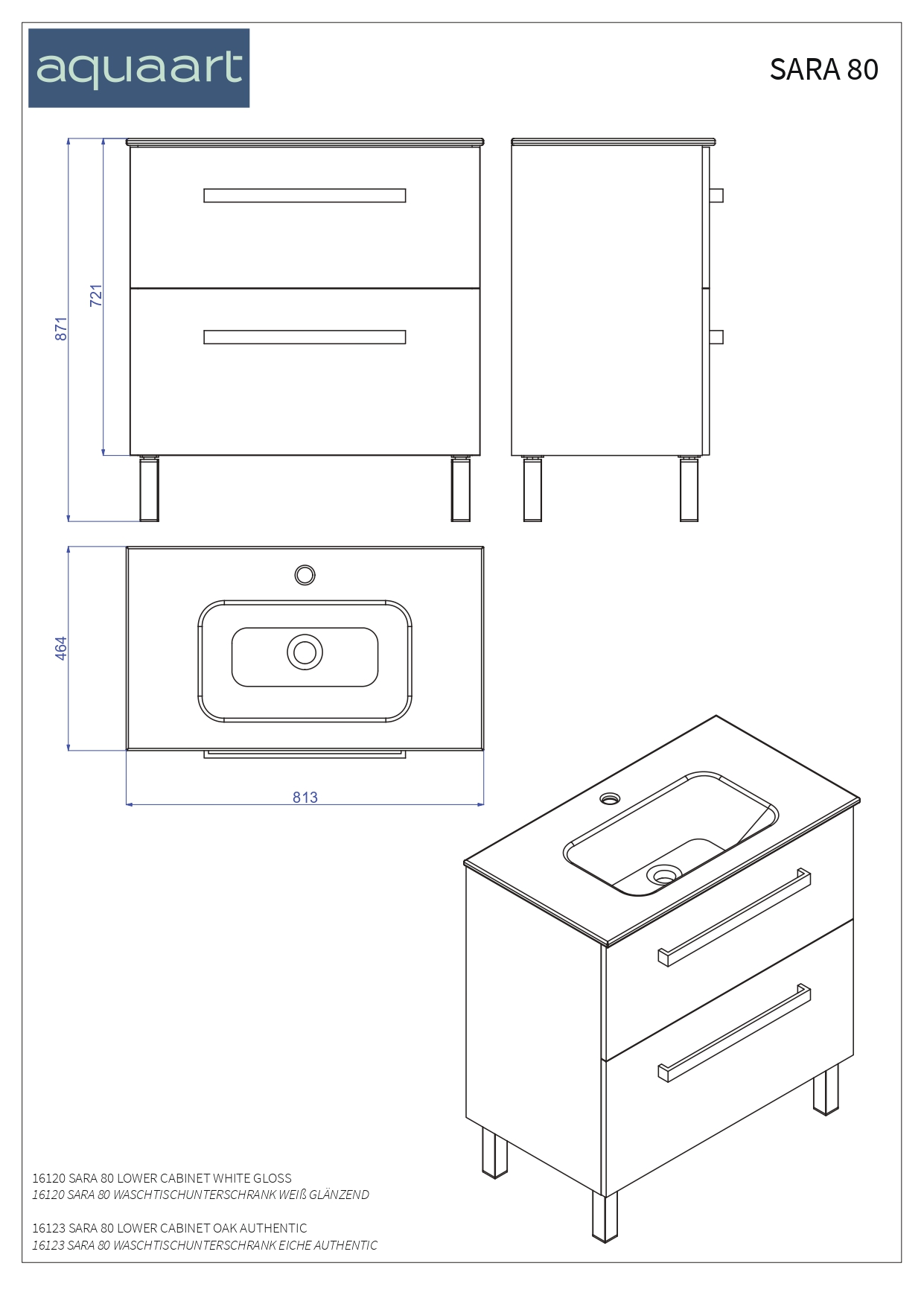 SARA 80 DONJI KUPAONSKI ORMARIĆ BIJELI SJAJ