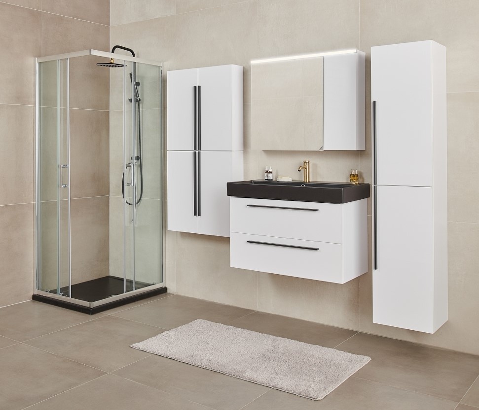 SHARP 85 DONJI KUPAONSKI ORMARIĆ BIJELI SJAJ CRNA RUČKICA