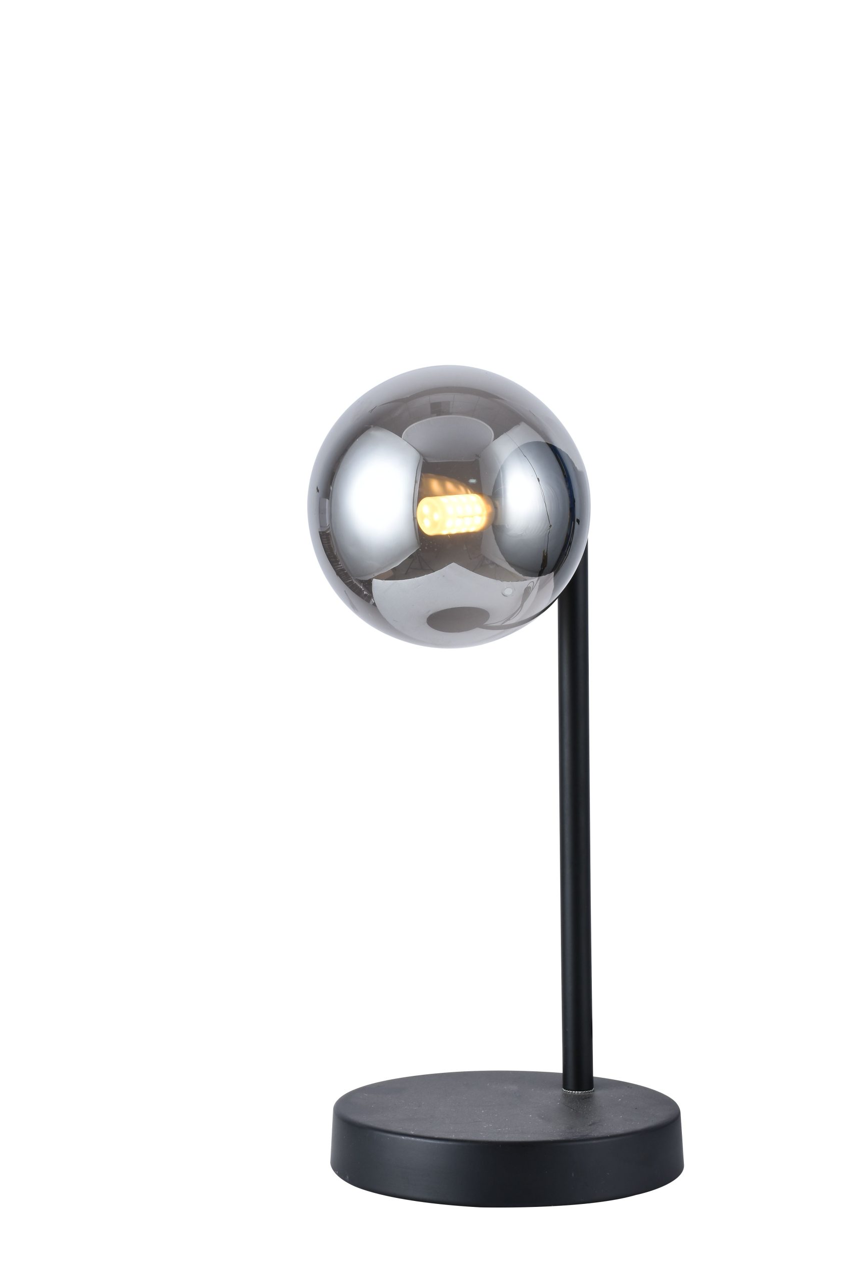 Metalna crna stolna svjetiljka sa staklenim sivim sjenilom iz serije Ena. Moderna svjetiljka bezvremenskog stila. Upotpunite izgled prostorije odabirom visilice iz iste serije.