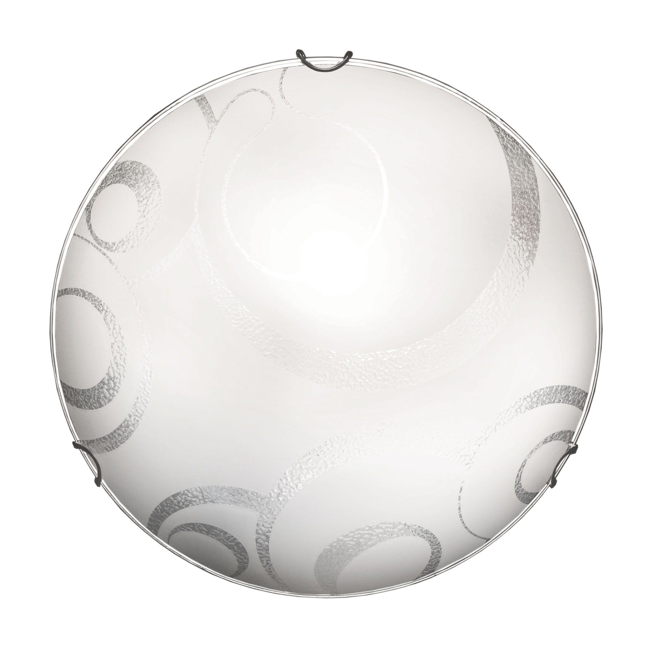 Okrugla bijela staklena plafonjera s dekorativnim uzorkom. Pruža ravnomjerno i ugodno osvjetljenje, a njezin klasičan dizajn s decentnim detaljima savršeno se uklapa u svaki interijer. Idealna za dnevne boravke, spavaće sobe i hodnike.