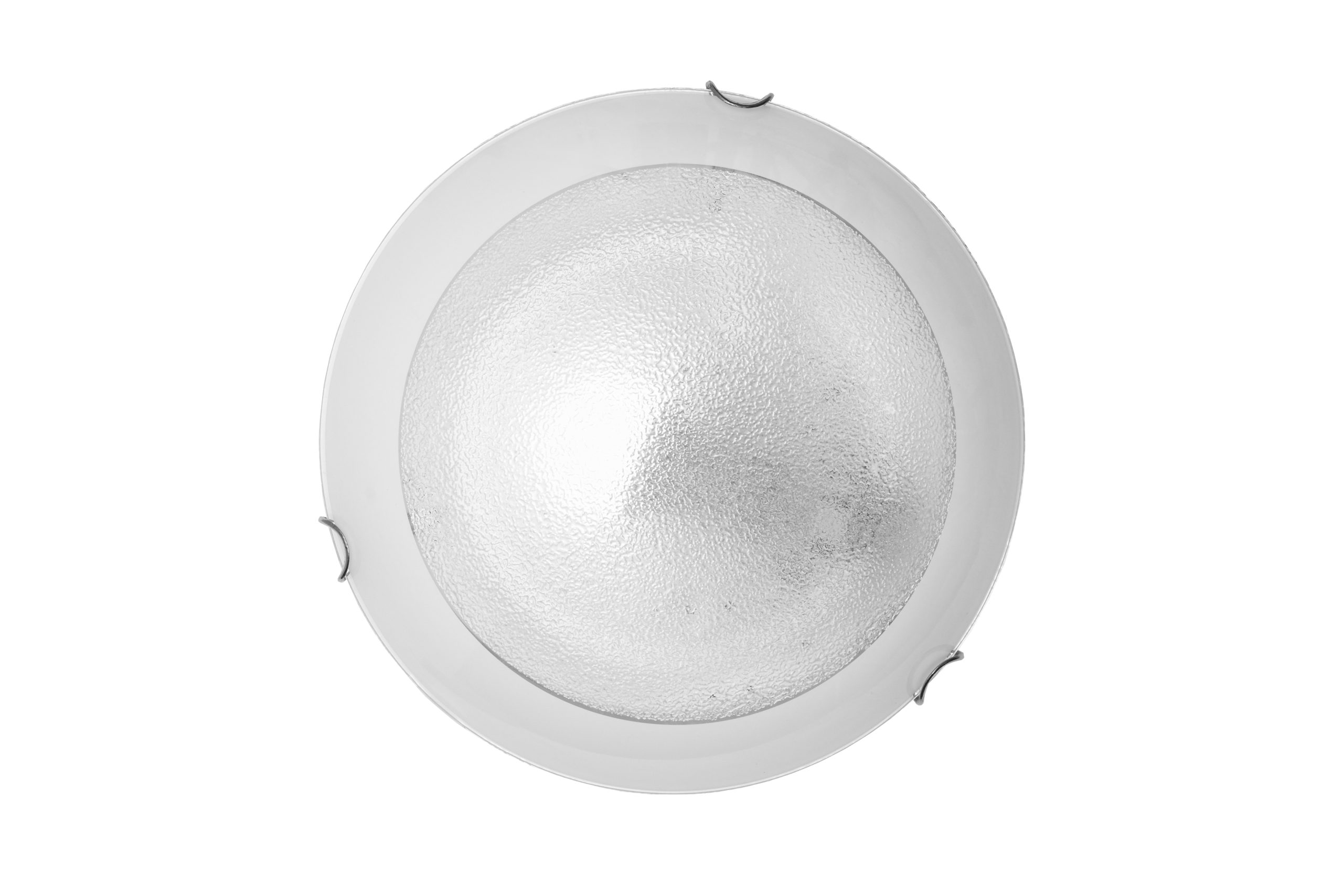 Okrugla bijela staklena plafonjera s dekorativnim uzorkom. Pruža ravnomjerno i ugodno osvjetljenje, a njezin klasičan dizajn s decentnim detaljima savršeno se uklapa u svaki interijer. Idealna za dnevne boravke, spavaće sobe i hodnike.