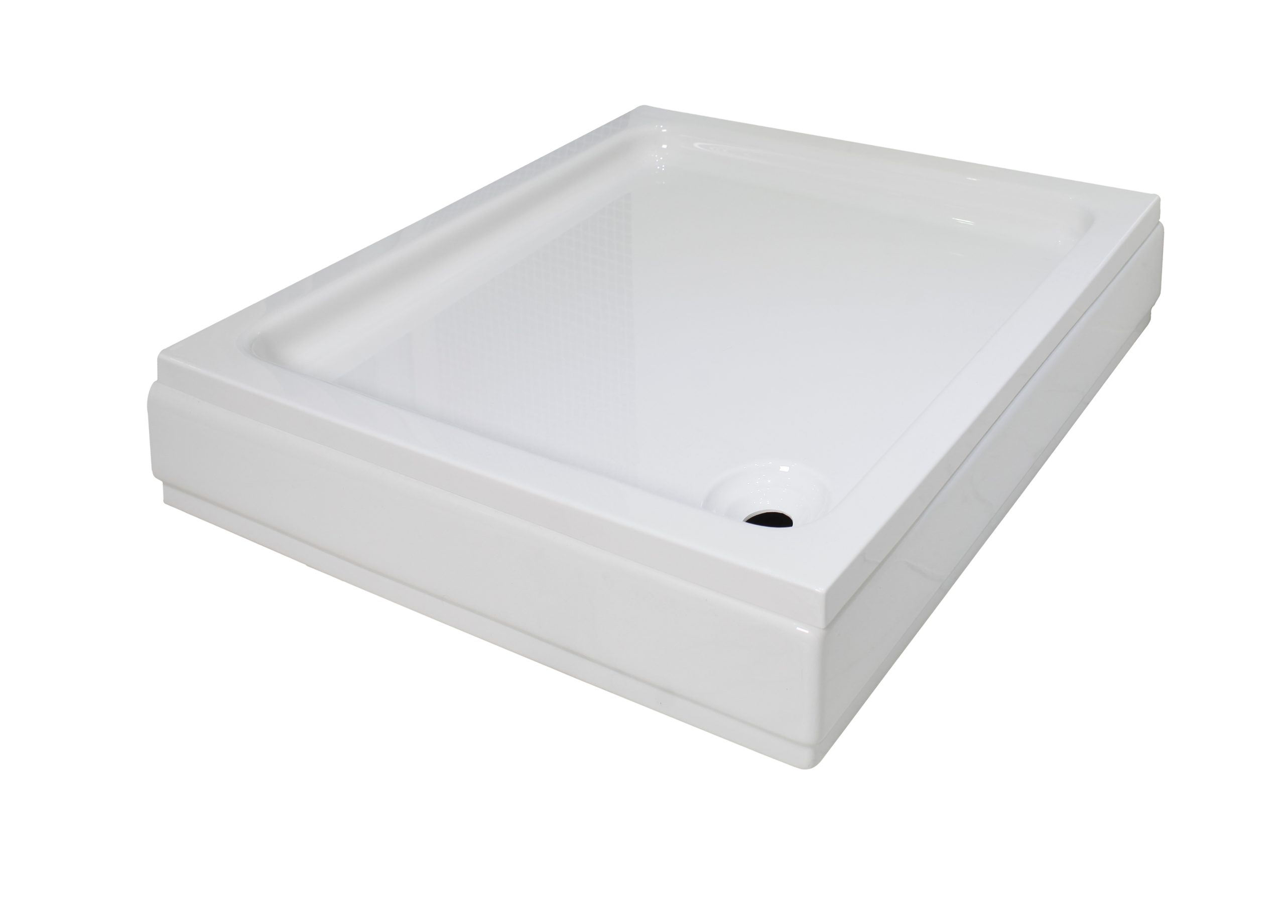 Bijela akrilna tuš kada s oblogom izrađena od 100% lijevanog sanitarnog akrila (PMMA), podnožje kade ojačano drvenom pločom te poliesterskom smolom i stakleni platnom. Proizvedeno u Hrvatskoj. Garancija kvalitete i trajnosti 10 godina. Preporučeni sifon: GL-11428, šifra 00836