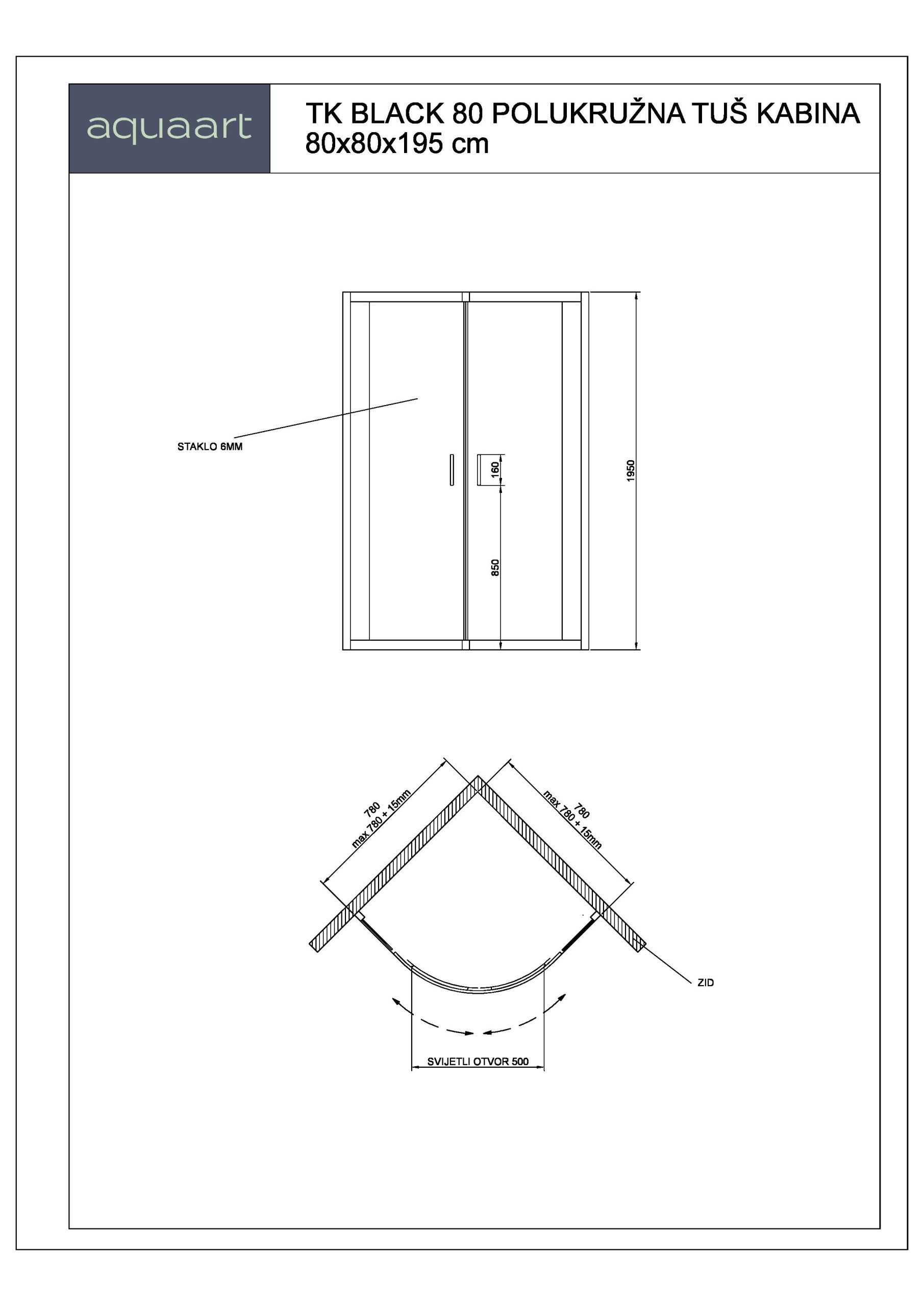 TK BLACK 80 POLUKRUŽNA TUŠ KABINA 80x80x195 cm