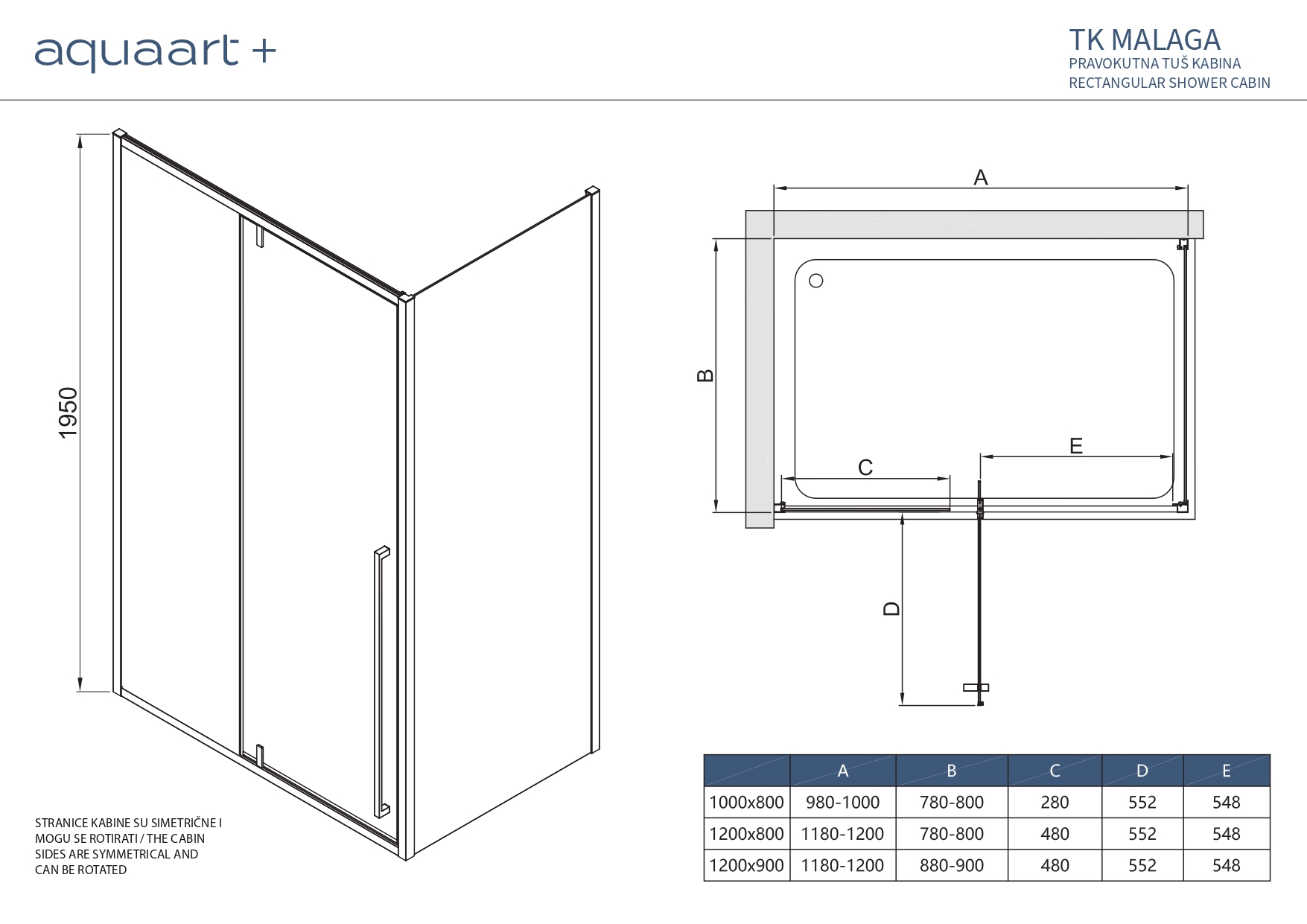 TK MALAGA 80120 BLACK PRAVOKUTNA TUŠ KABINA 80X120X195 cm