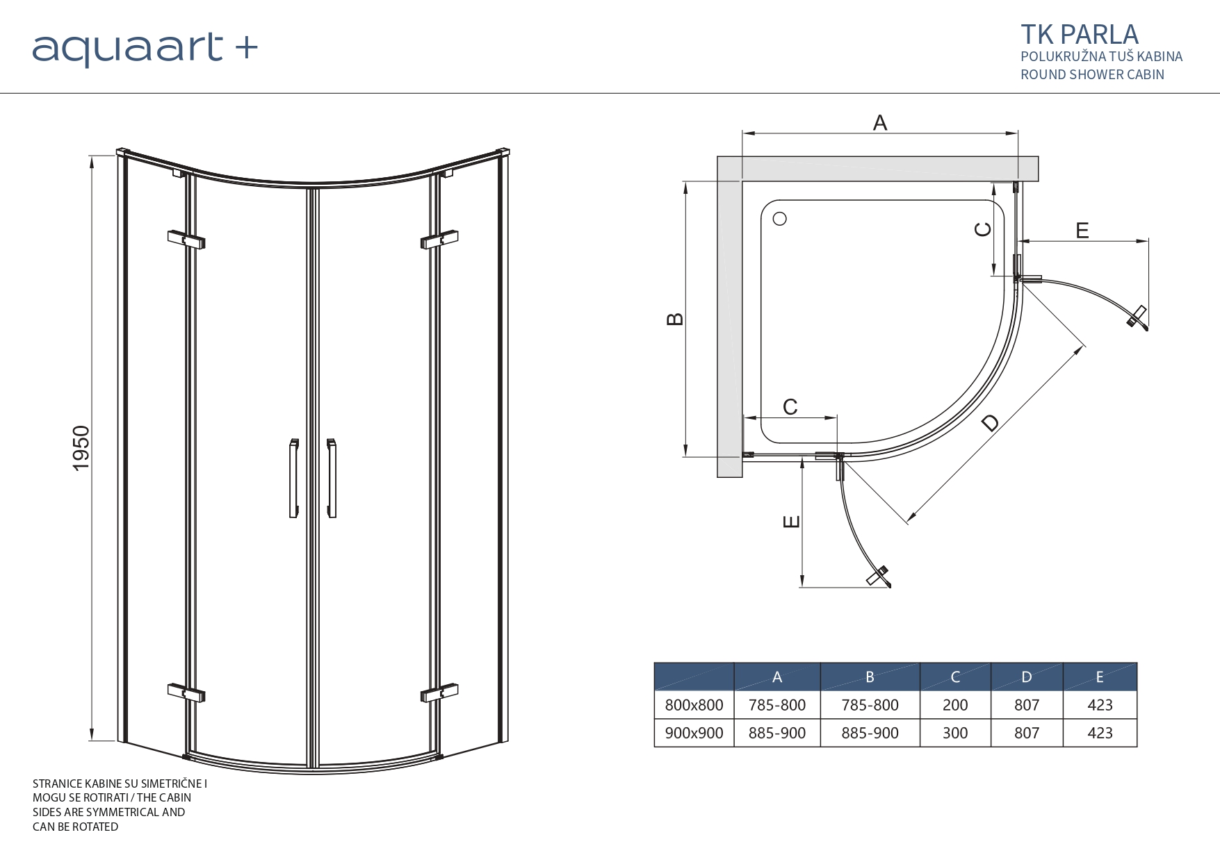 TK PARLA 90 CHROME POLUKRUŽNA TUŠ KABINA 90X90X195 cm