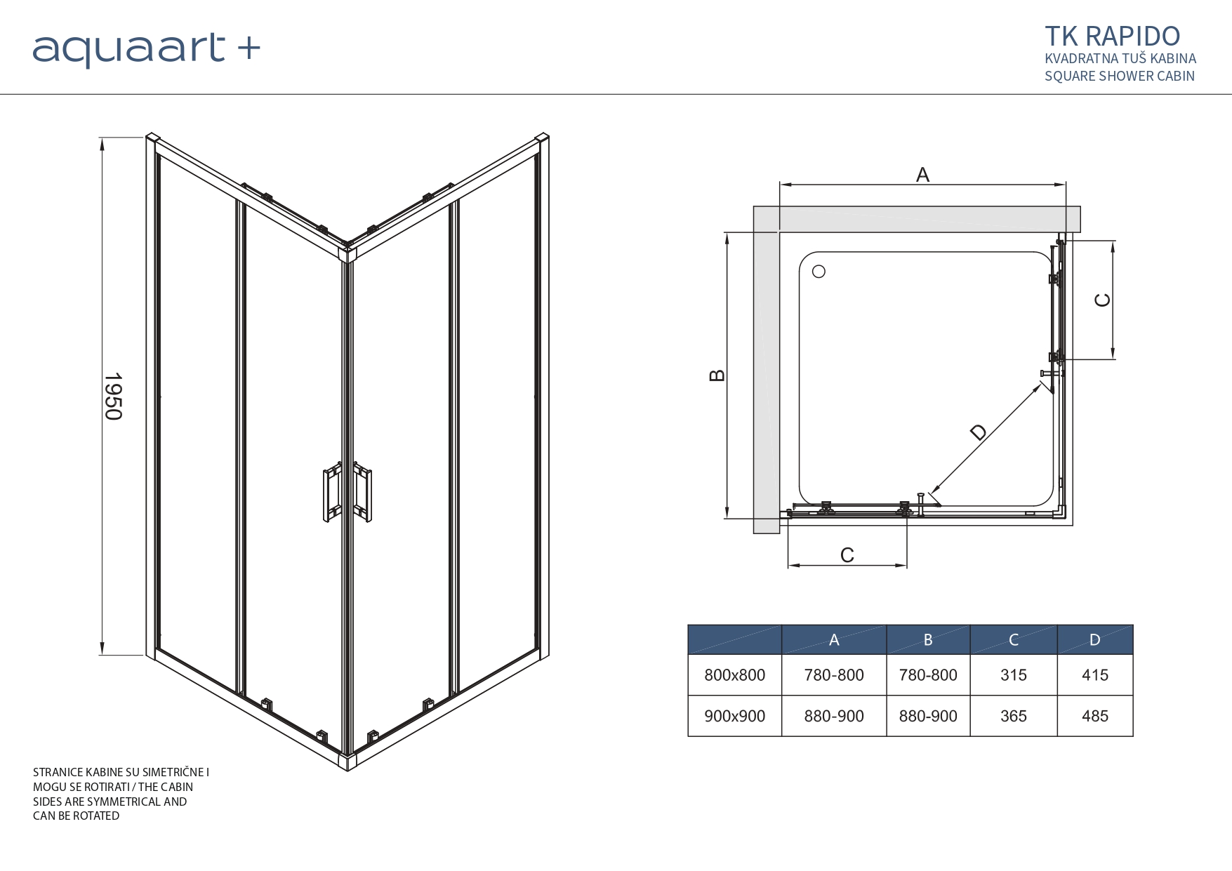 TK RAPIDO 90 CHROME KVADRATNA TUŠ KABINA 90X90X195 cm