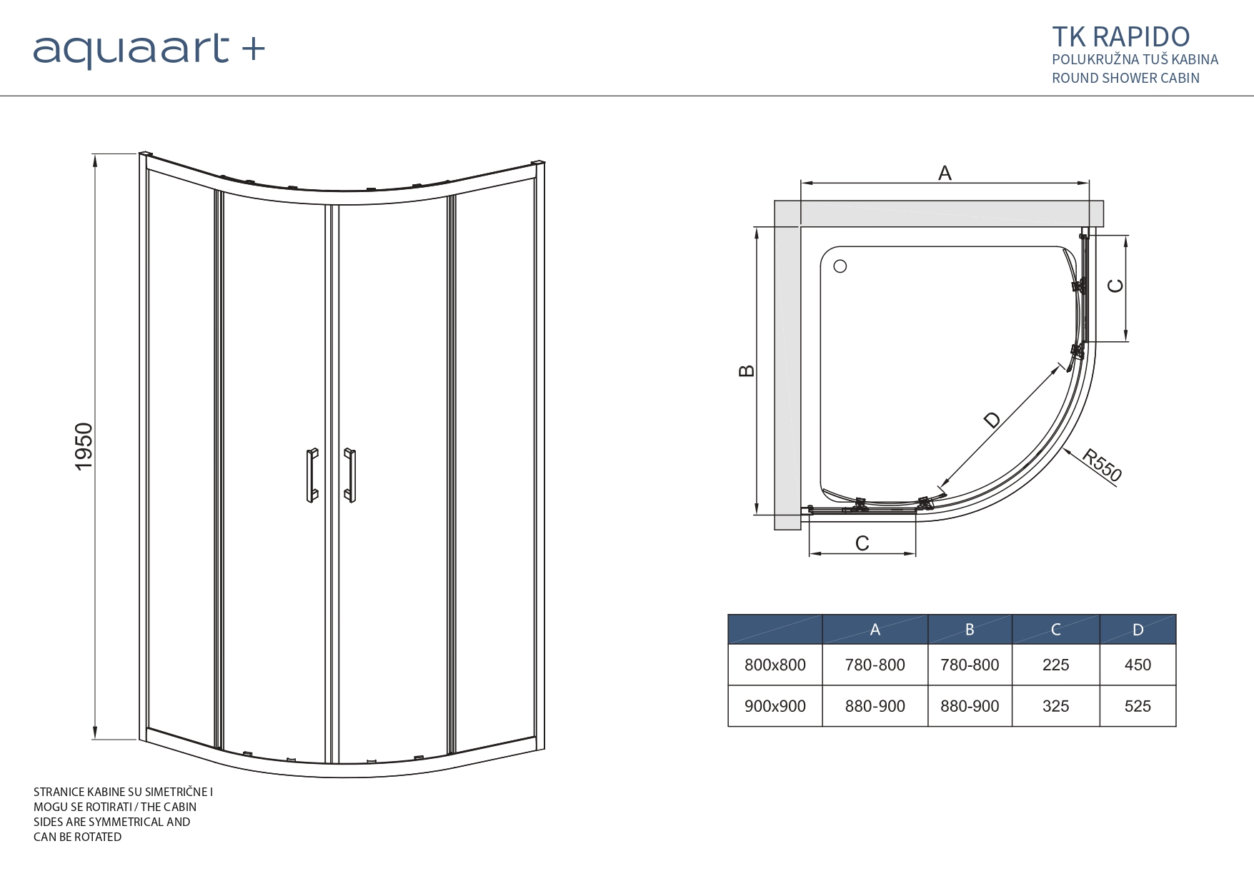 TK RAPIDO 90 CHROME POLUKRUŽNA TUŠ KABINA 90X90X195 cm