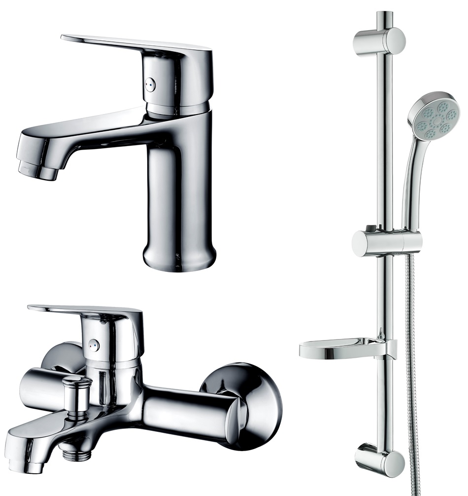 Set uključuje miješalicu za umivaonik, miješalicu za kadu i tuš set s kliznom šipkom, tuš crijevom te tuš slušalicom. Izrađen je od kvalitetnog mesinga, što osigurava dugotrajnost i pouzdanost. Kompletnu opremu za vašu kupaonicu s modernim dizajnom i funkcionalnošću.