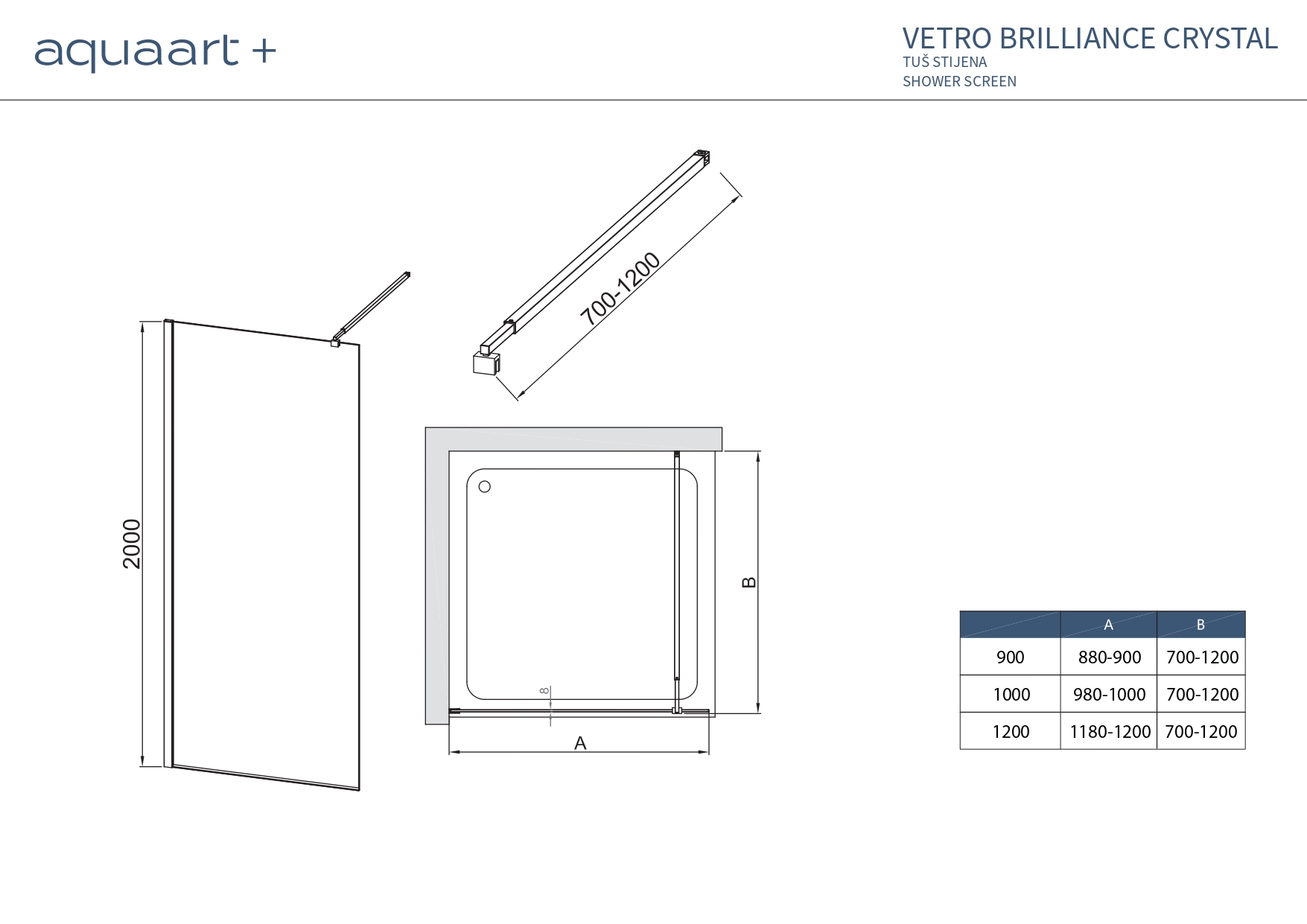 VETRO BRILLIANCE CRYSTAL 120 BLACK TUŠ STIJENA 120x200cm
