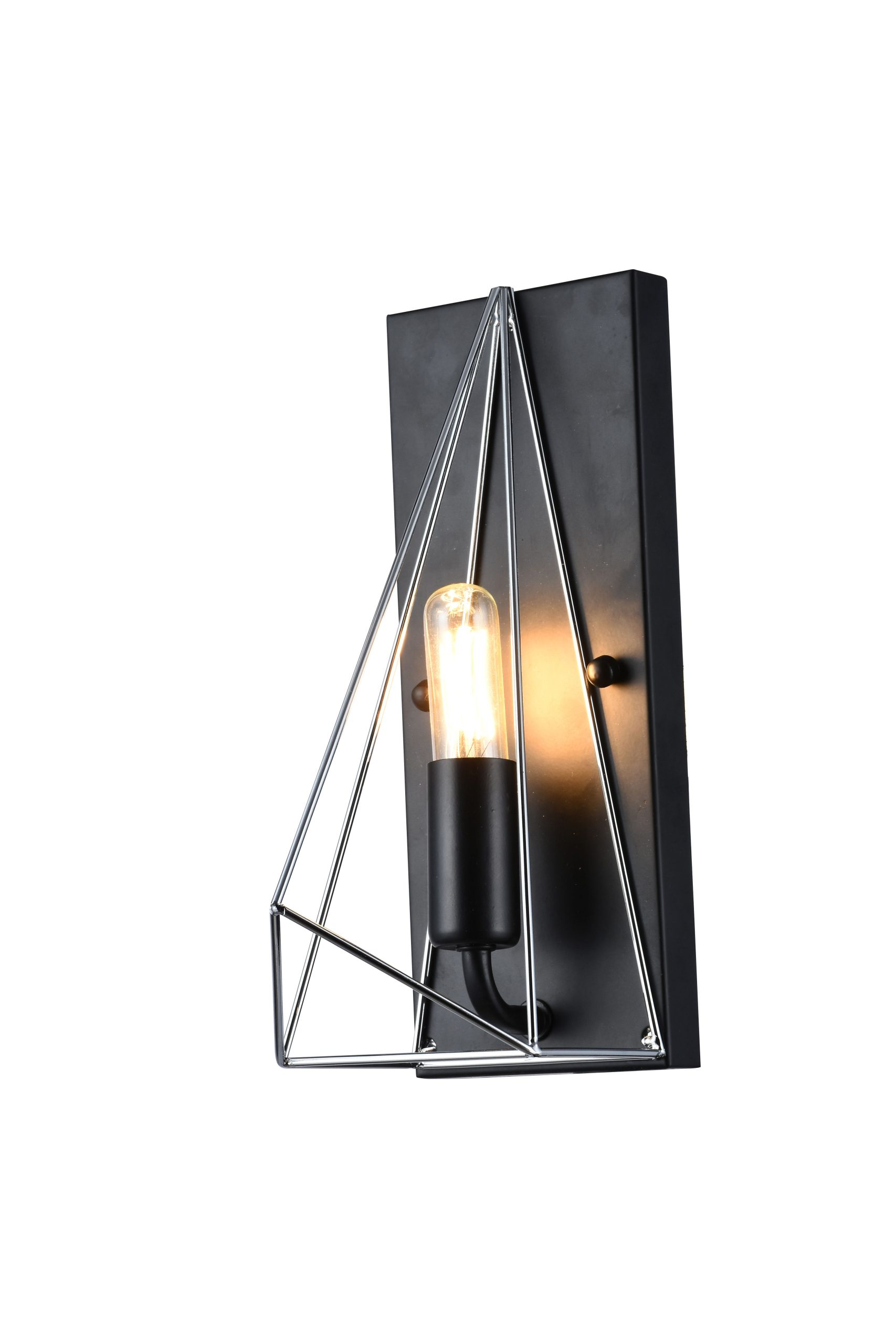 Zidna svjetiljka od metala s kromiranim sjenilom i crnom bazom iz serije Ava. Zidna svjetiljka s geometrijskim kavezom za sjenilo ostavlja snažan dojam u interijeru. Upotpunite izgled prostorije odabirom artikala iz iste serije.