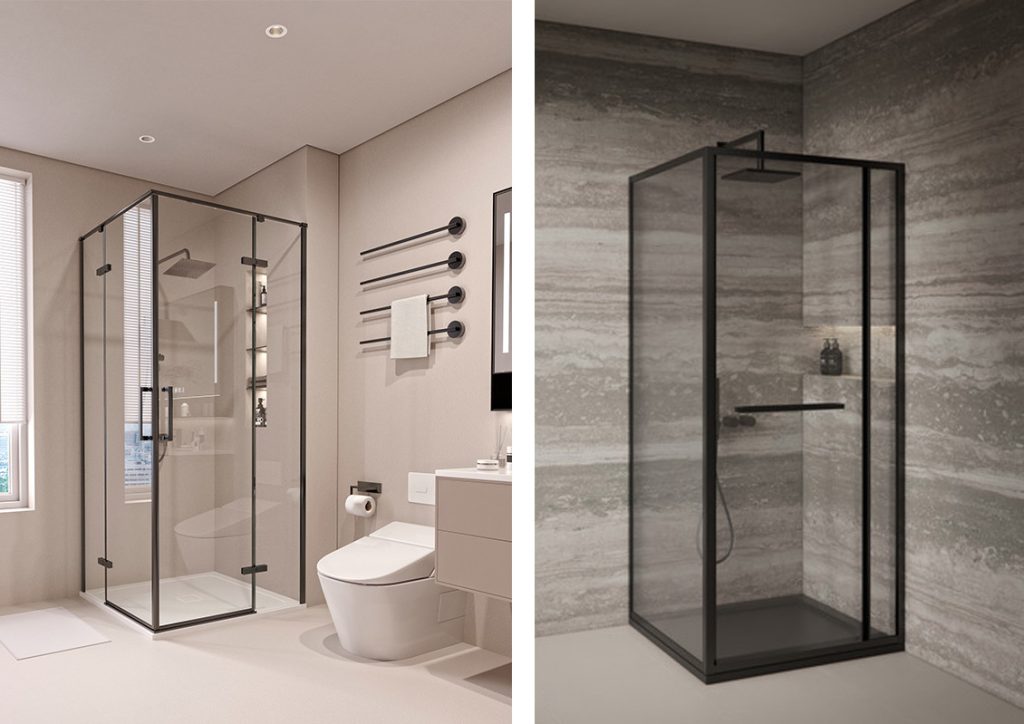 Tuš kabine s tankim aluminijskim profilima djeluju lagano i precizno. Posebno su tražene izvedbe u crnoj ili neutralnoj završnoj obradi koje stvaraju jasan kontrast i vizualnu strukturu bez suvišnih elemenata.